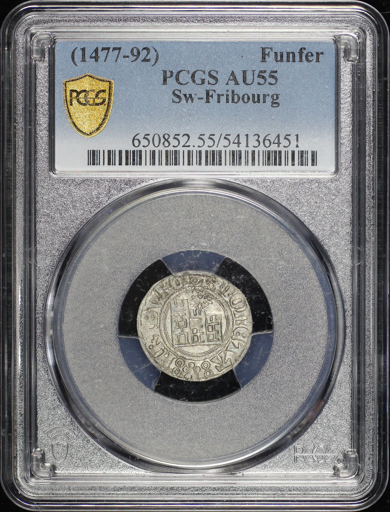 (1477-92) Fribourg, Switzerland Funfer PCGS AU-55.