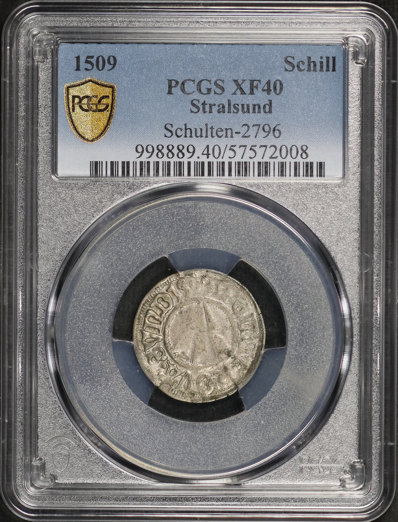 1509 Stralsund Schulten-2796 Schilling PCGS XF-40