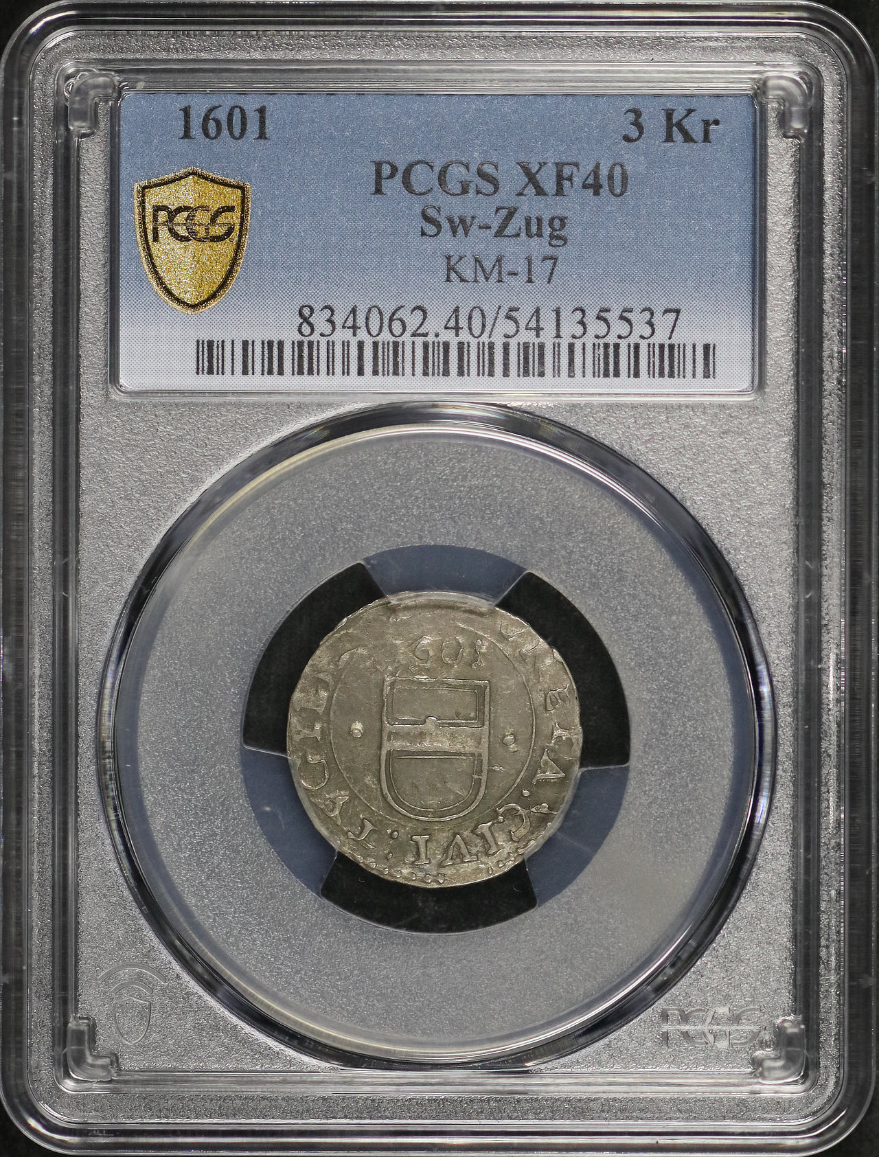 1601 Sw-Zug 3 Kreuzer KM-17 PCGS XF-40.