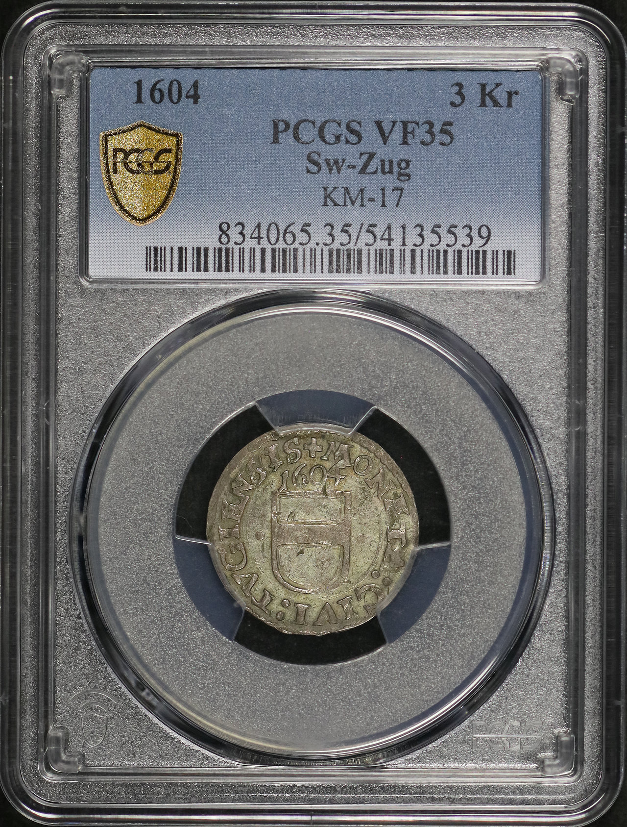 1604 Zug 3 Kreuzer Sw-Zug KM-17 PCGS VF-35.