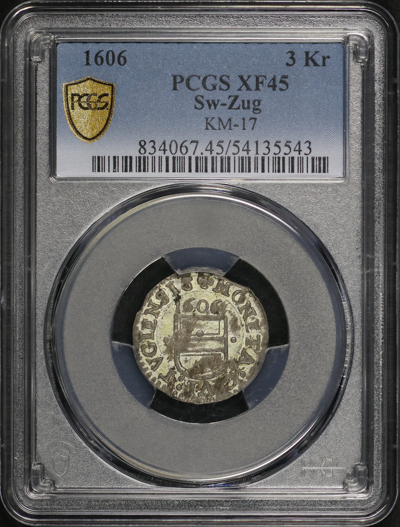 1606 Zug 3 Kreuzer Sw-Zug KM-17 PCGS XF-45.