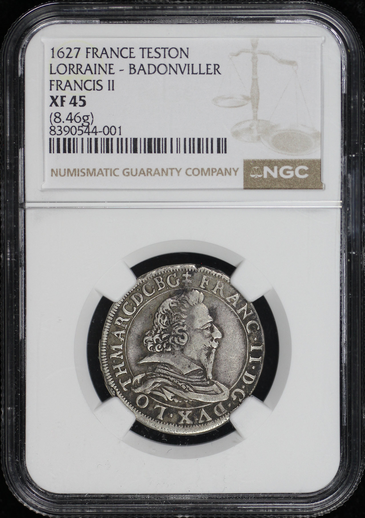 1627 Lorraine, France Badonviller Francis II (8.46g) Teston NGC XF-45 .