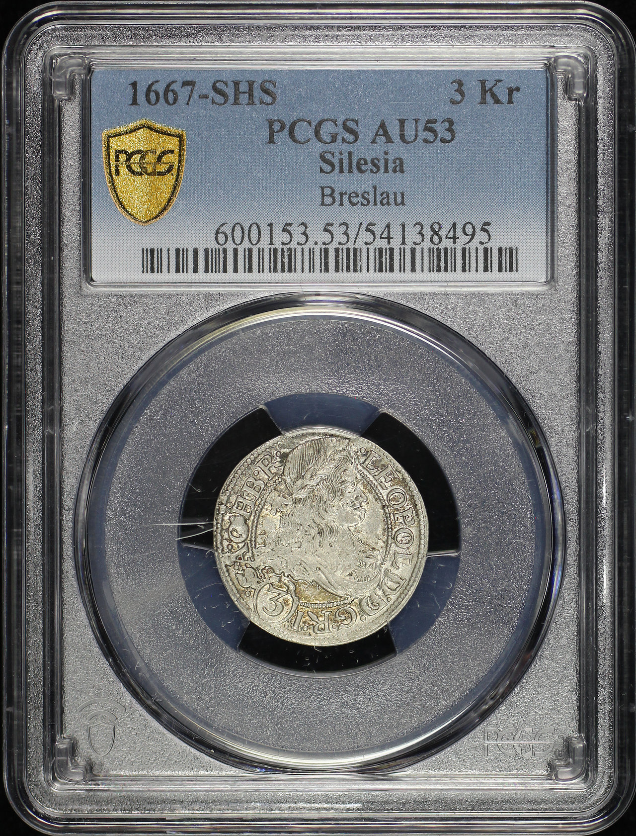 1667-SHS Silesia Breslau 3Kr PCGS AU-53.