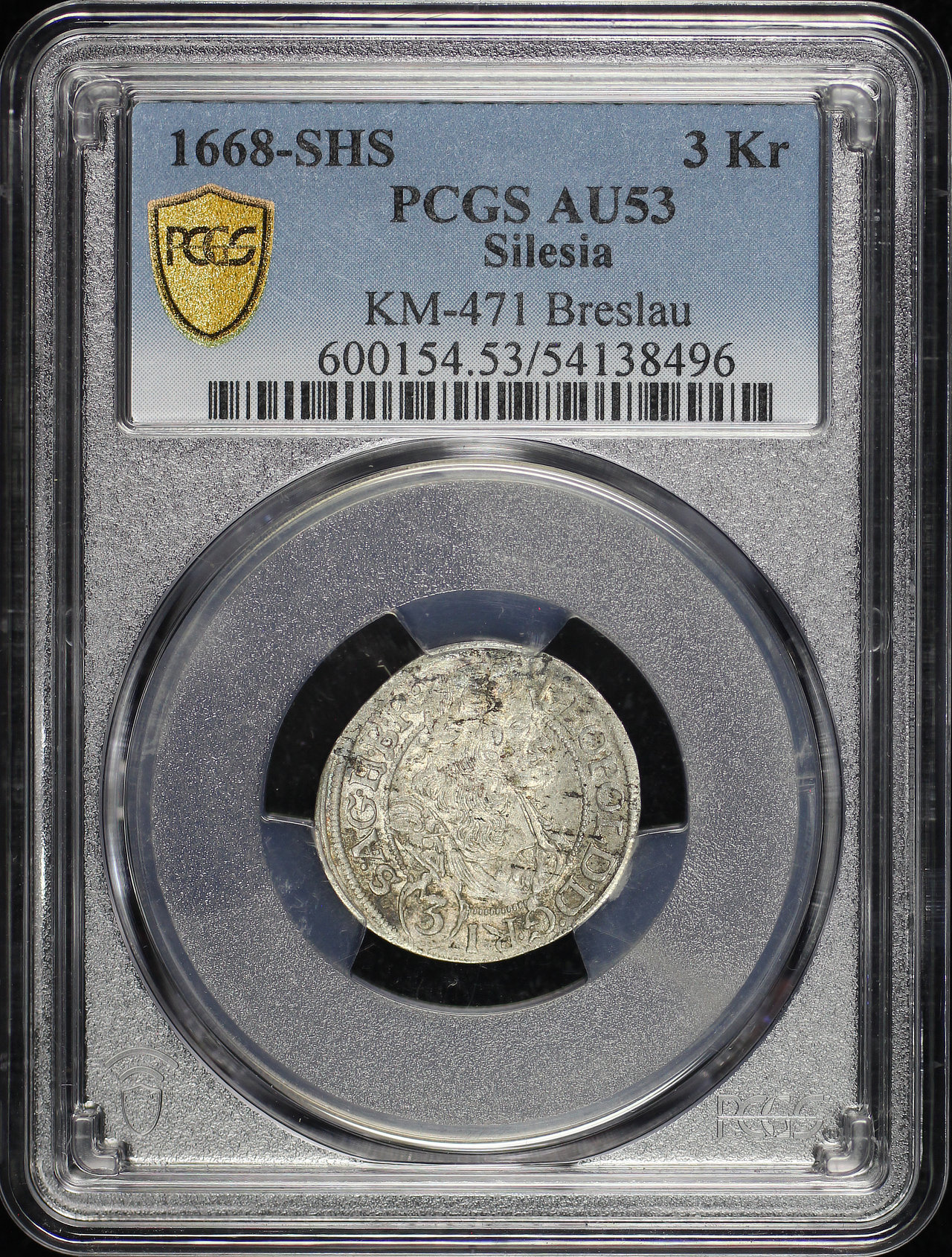 1668-SHS Silesia, Breslau KM-471 3Kr PCGS AU-53