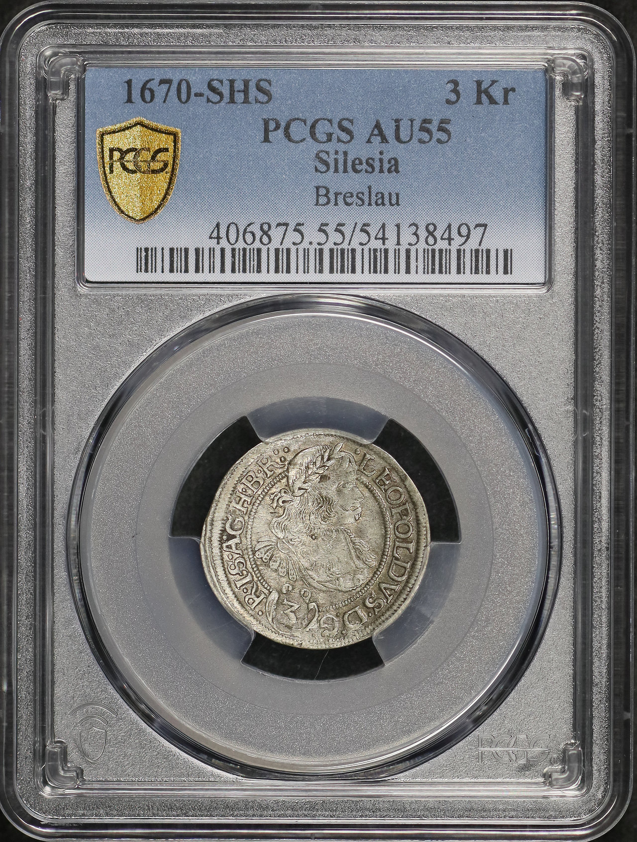 1670-SHS Silesia Breslau 3Kr PCGS AU-55.