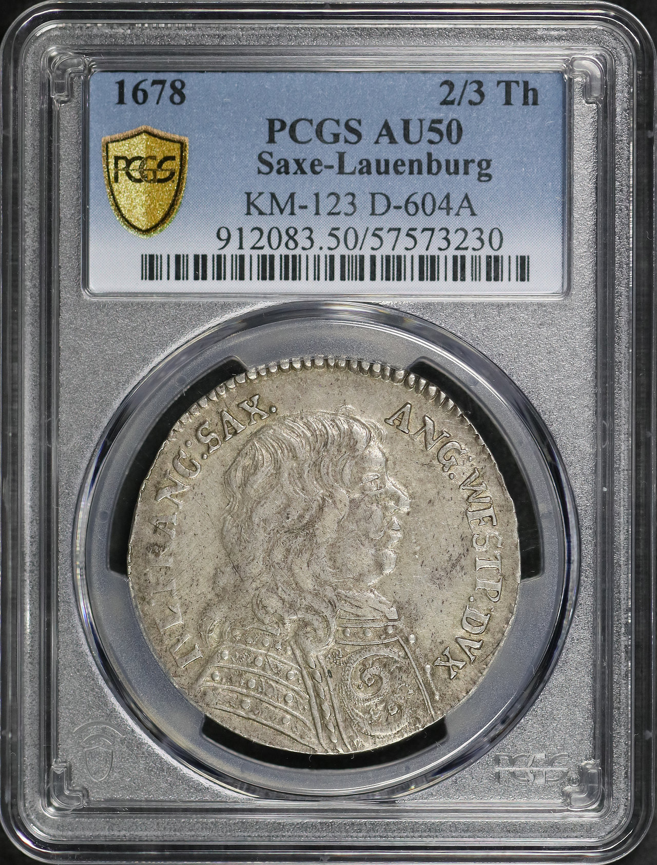 1678 Saxe-Launenburg D-604A KM-123 2/3Th PCGS AU-50.