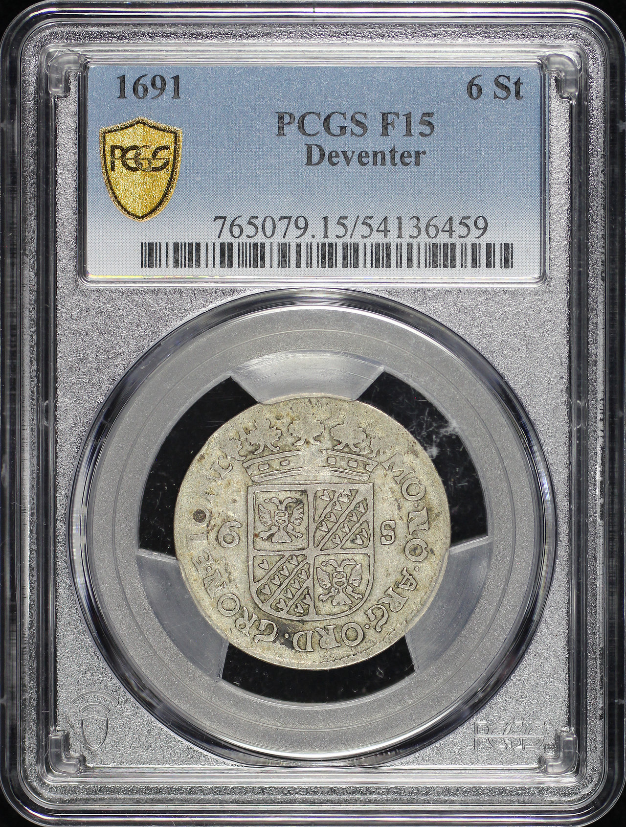 1691 Netherlands Deventer Silver 6 Stuivers (Rijderschelling) KM-78 PCGS F-15.