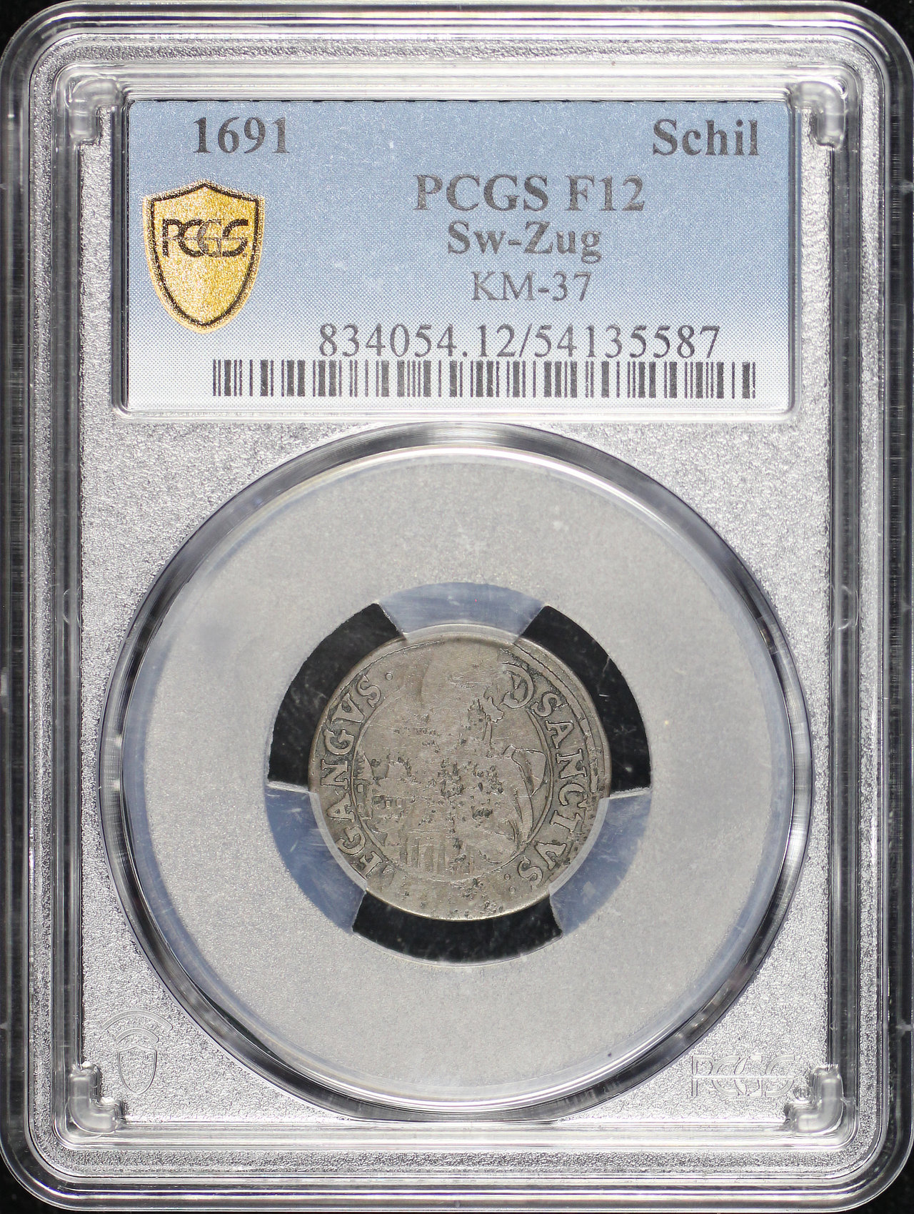 1691 Switzerland Zug Billon Schilling KM-37 PCGS F-12