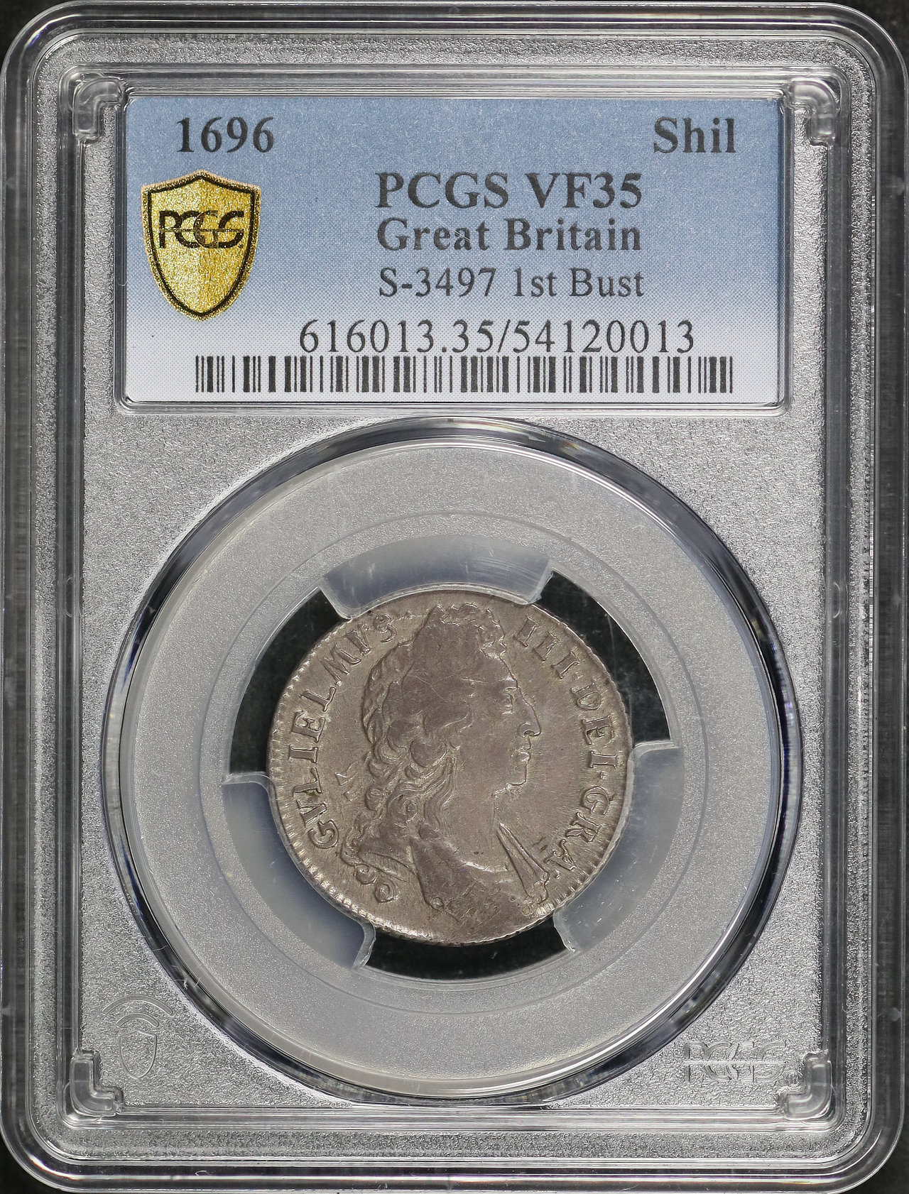 1696 Great Britain S-3497 1st Bust Shilling PCGS VF-35.
