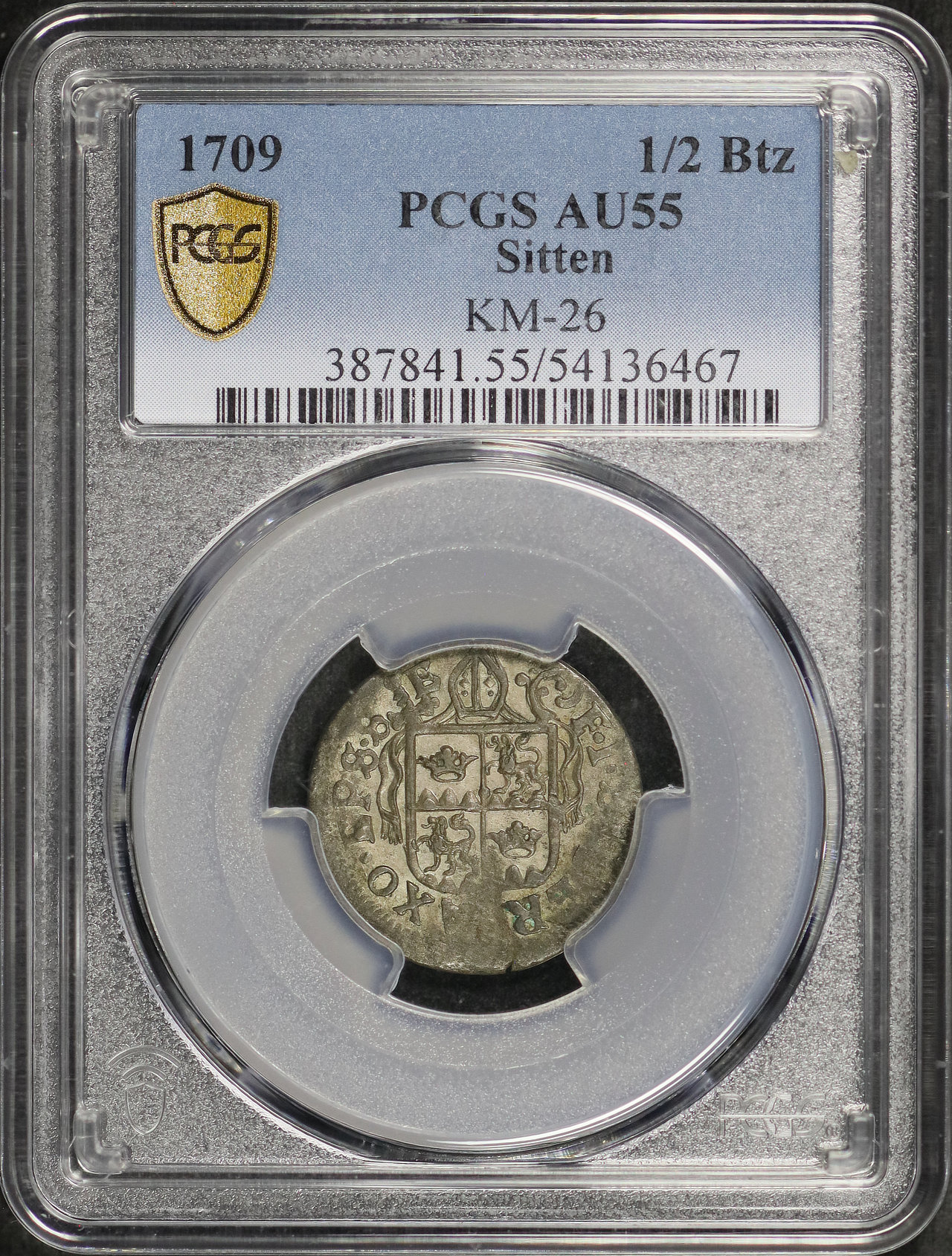 1709 Sitten KM-26 1/2Btz PCGS AU-55.