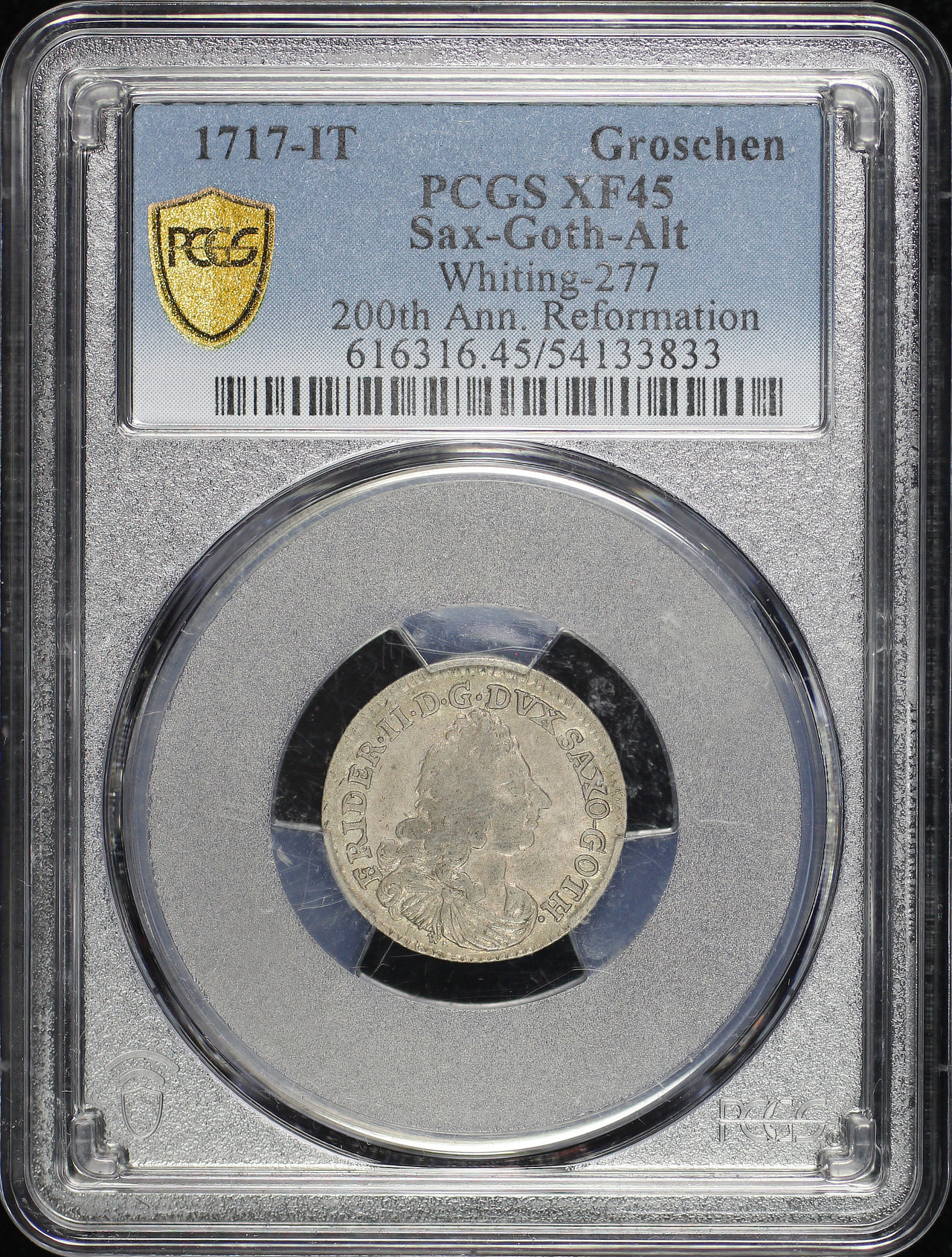 1717-IT German States Saxe-Gotha-Altenburg Silver 1 Groschen (1/24 Thaler) Bicentennial of the Reformation Whiting-277 KM-191 PCGS XF-45.