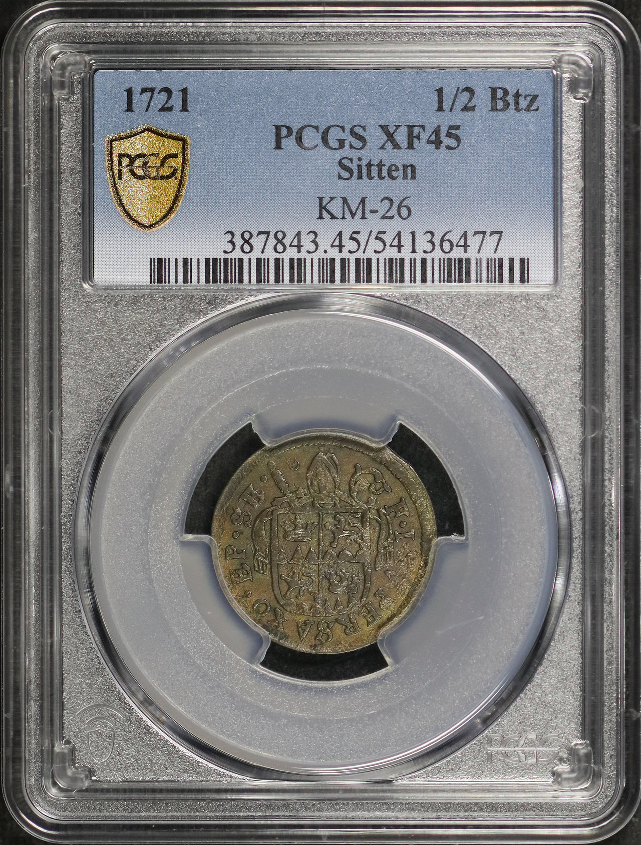 1721 Sitten KM-26 1/2Btz PCGS XF-45
