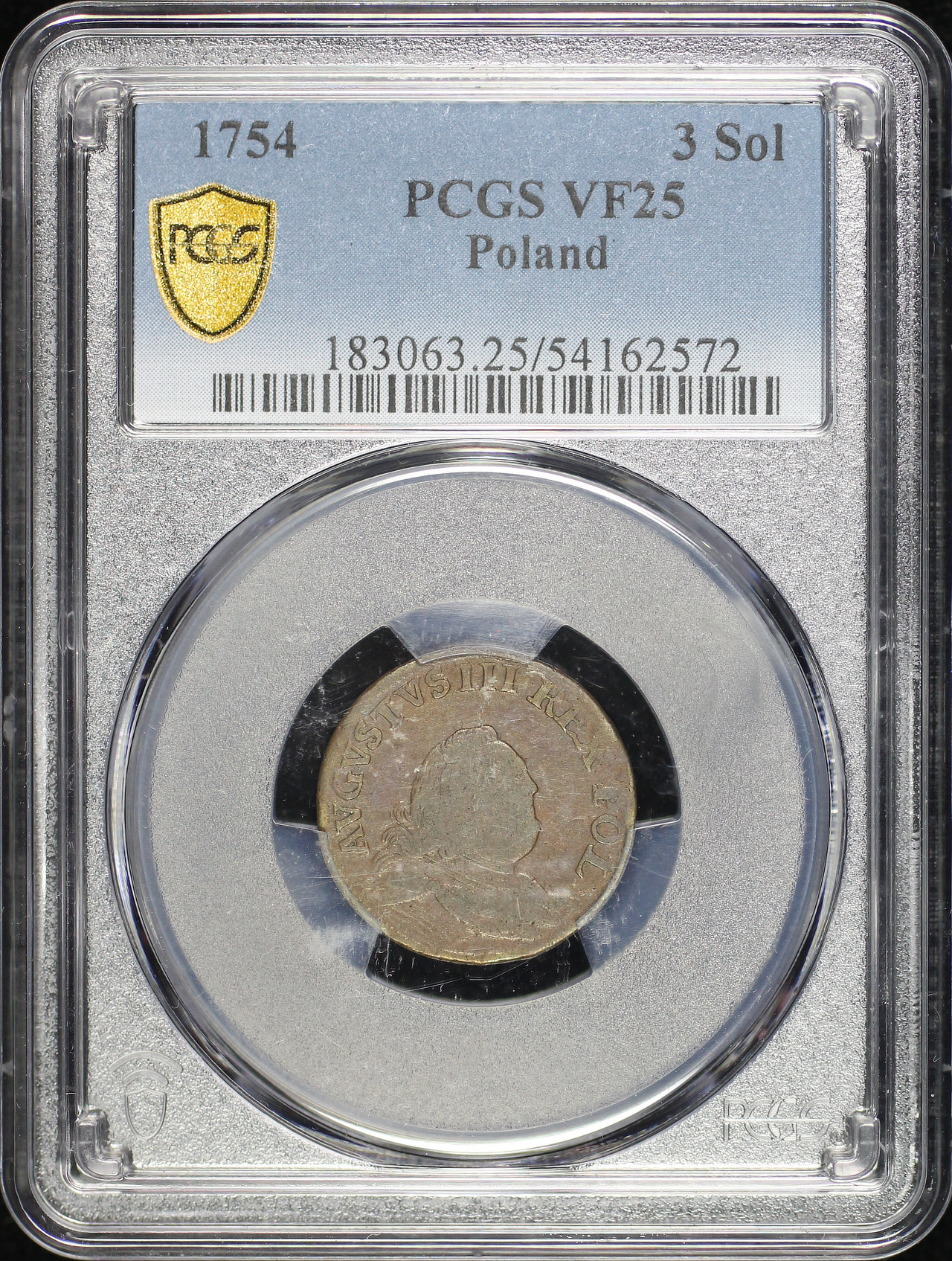 1754 Poland Copper 3 Solidi (1 Grosz) KM-147.1 PCGS VF-25