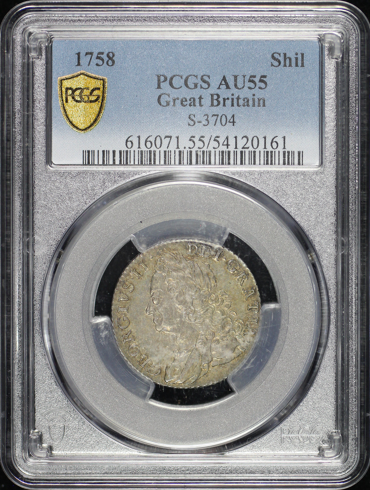 1758 Great Britain King George II Silver Shilling S-3704 KM-583.3 PCGS AU-55.