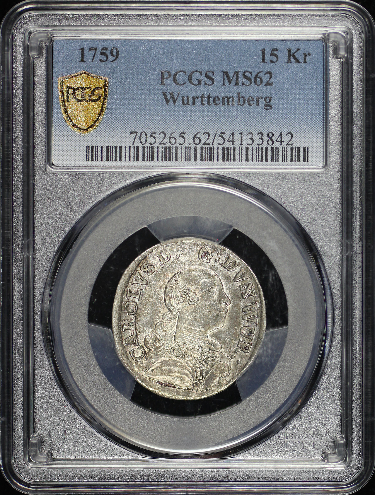 1759 German States Württemberg Billon 15 Kreuzer KM-388 PCGS MS-62