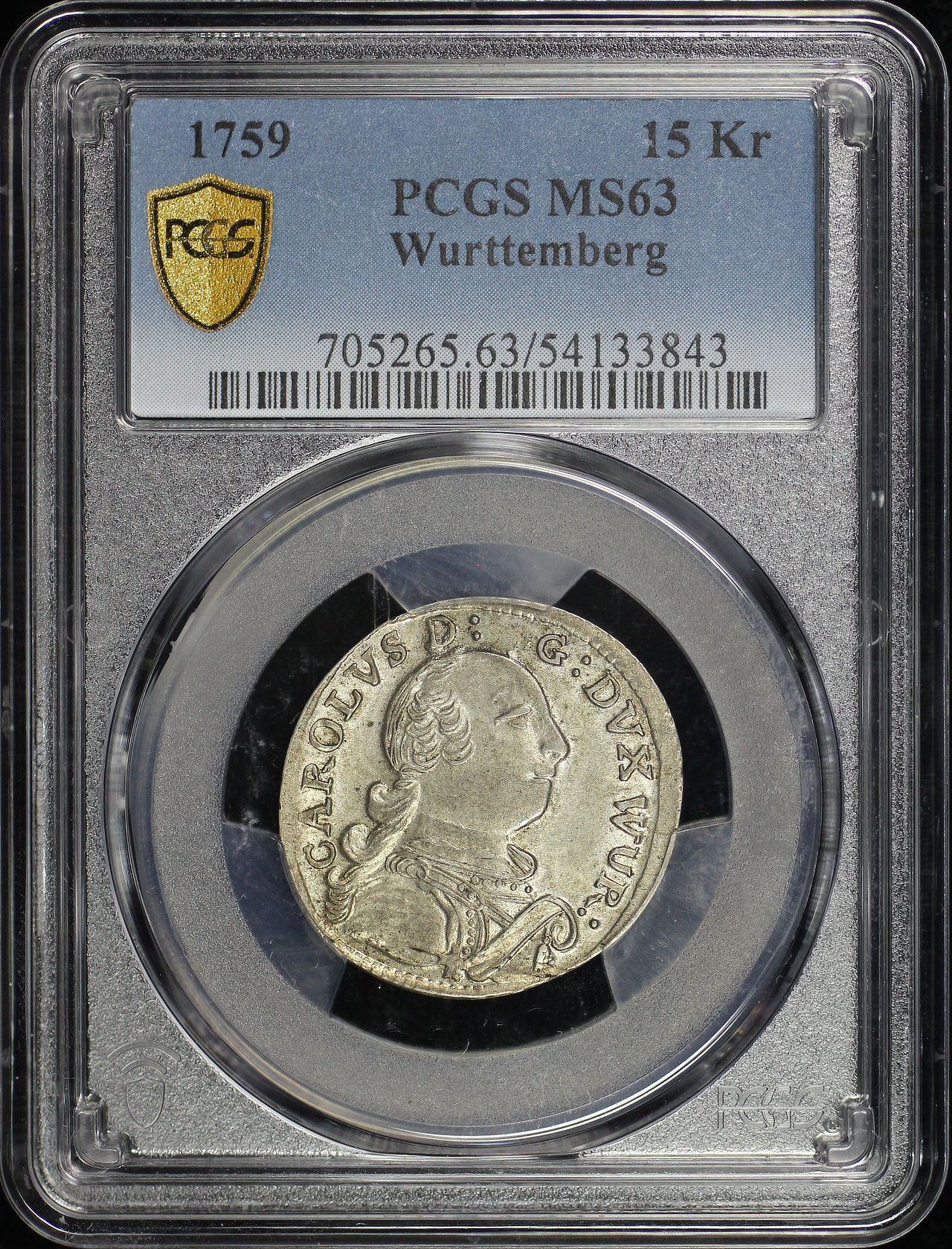 1759 Wurttemberg 15Kr PCGS MS-63