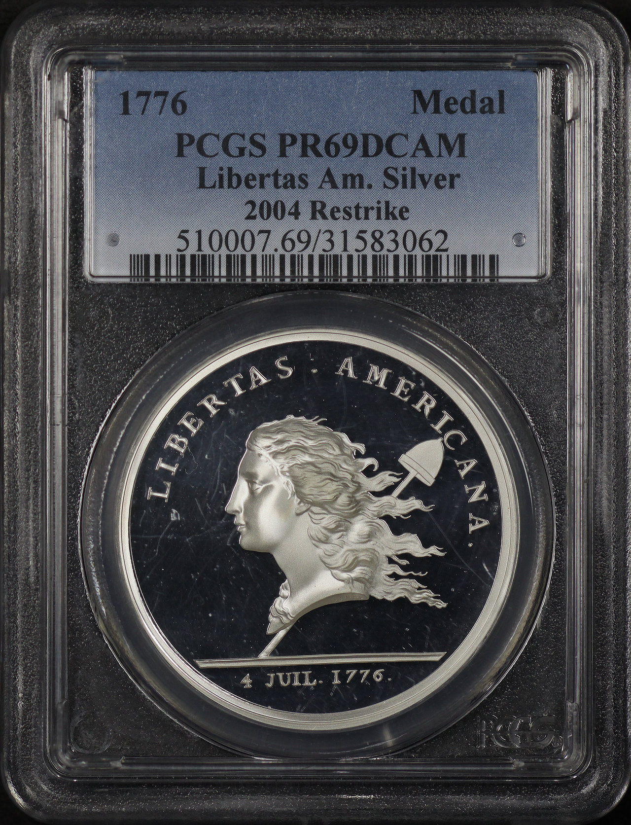 1776 Libertas Americana 2004 Siver Restrike PCGS PR-69 DCAM.