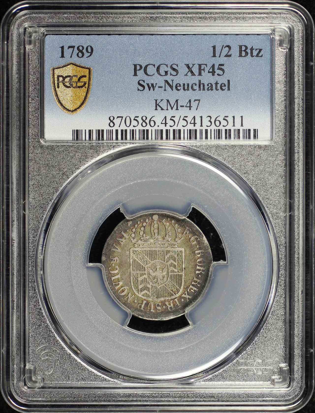 1789 Switzerland Neuchâtel Billon 1/2 Batzen KM-47 HMZ-2-711 PCGS XF-45. Both sides display nice, dark toning along the rim!