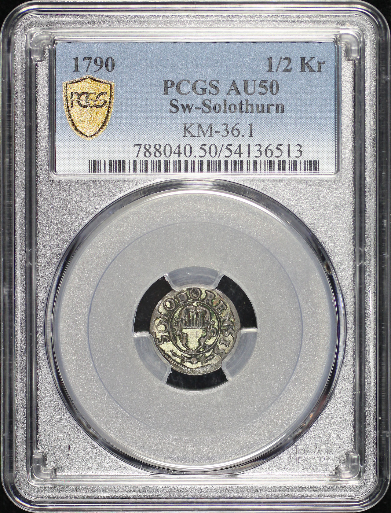 1790 Solothurn, Switzerland KM-36.1 1/2Kr PCGS AU-50.