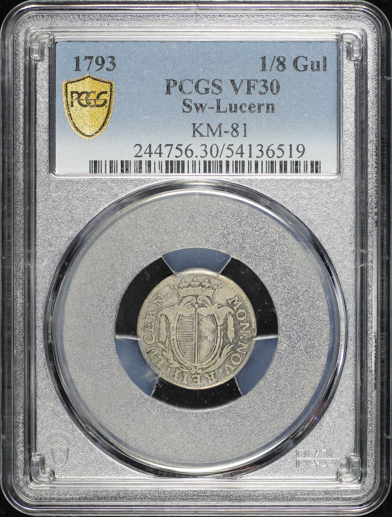 1793 Lucerne, Switzerland 1/8 Gulden KM-81 PCGS VF-30.