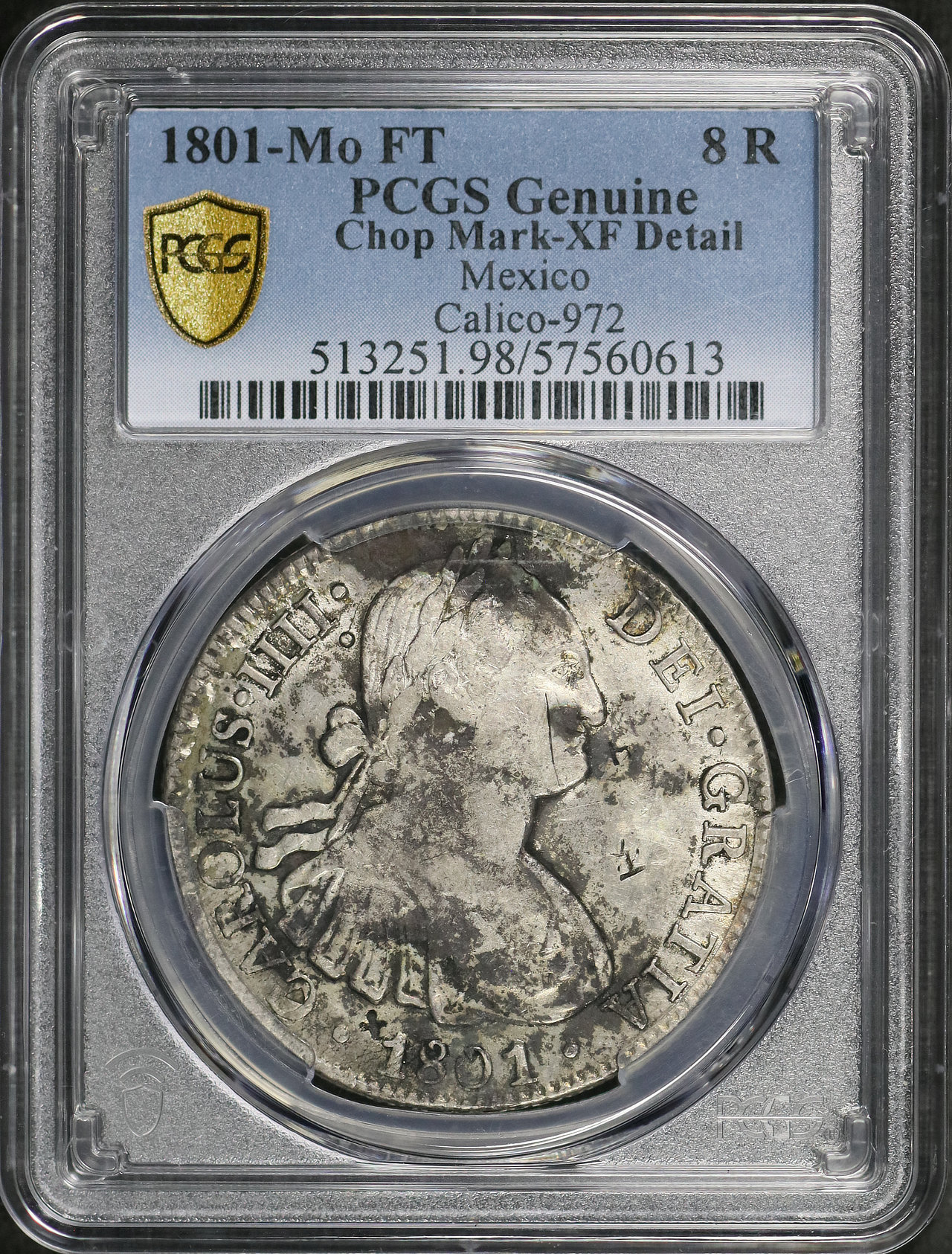 1801-Mo Mexico Calico-972 8R PCGS XF Details Chop Mark .