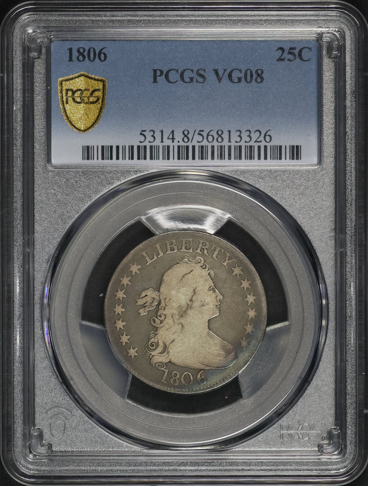 1806 Draped Bust Quarter PCGS VG-08 designed by Robert Scot.
