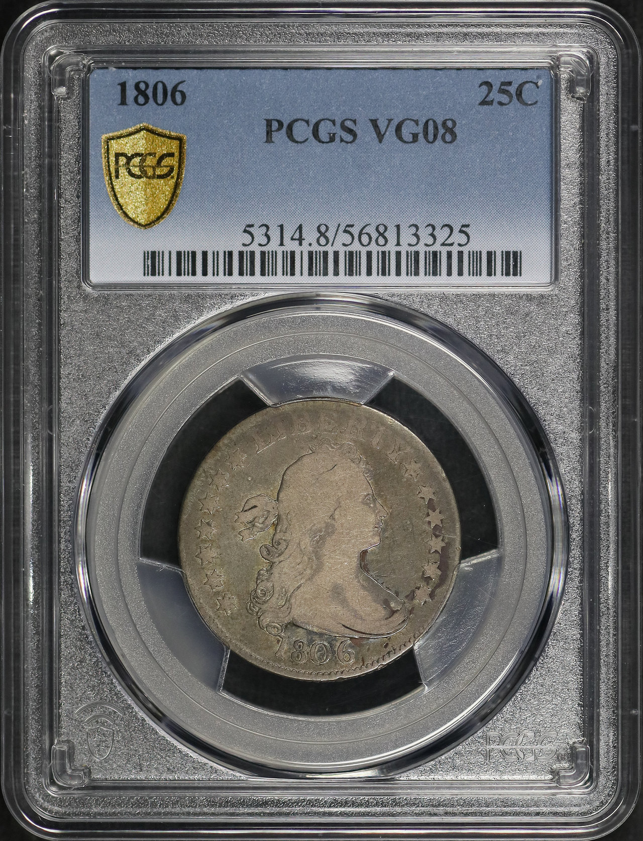 1806 Draped Bust Quarter PCGS VG-08 designed by Robert Scot.