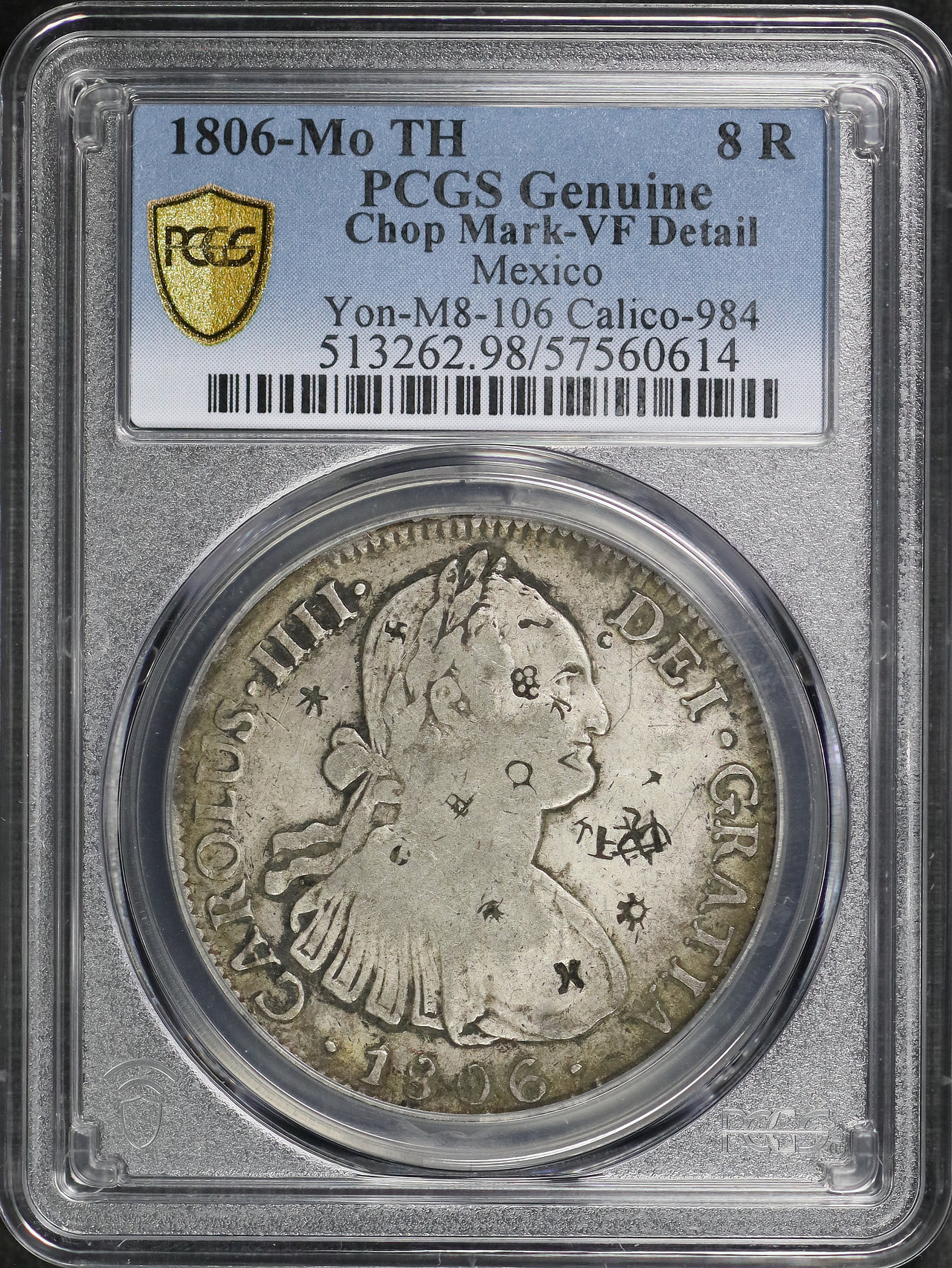 1806-Mo TH Mexico Yon-M8-106 Calico-984 Chop Mark 8R PCGS VF Details cleaned