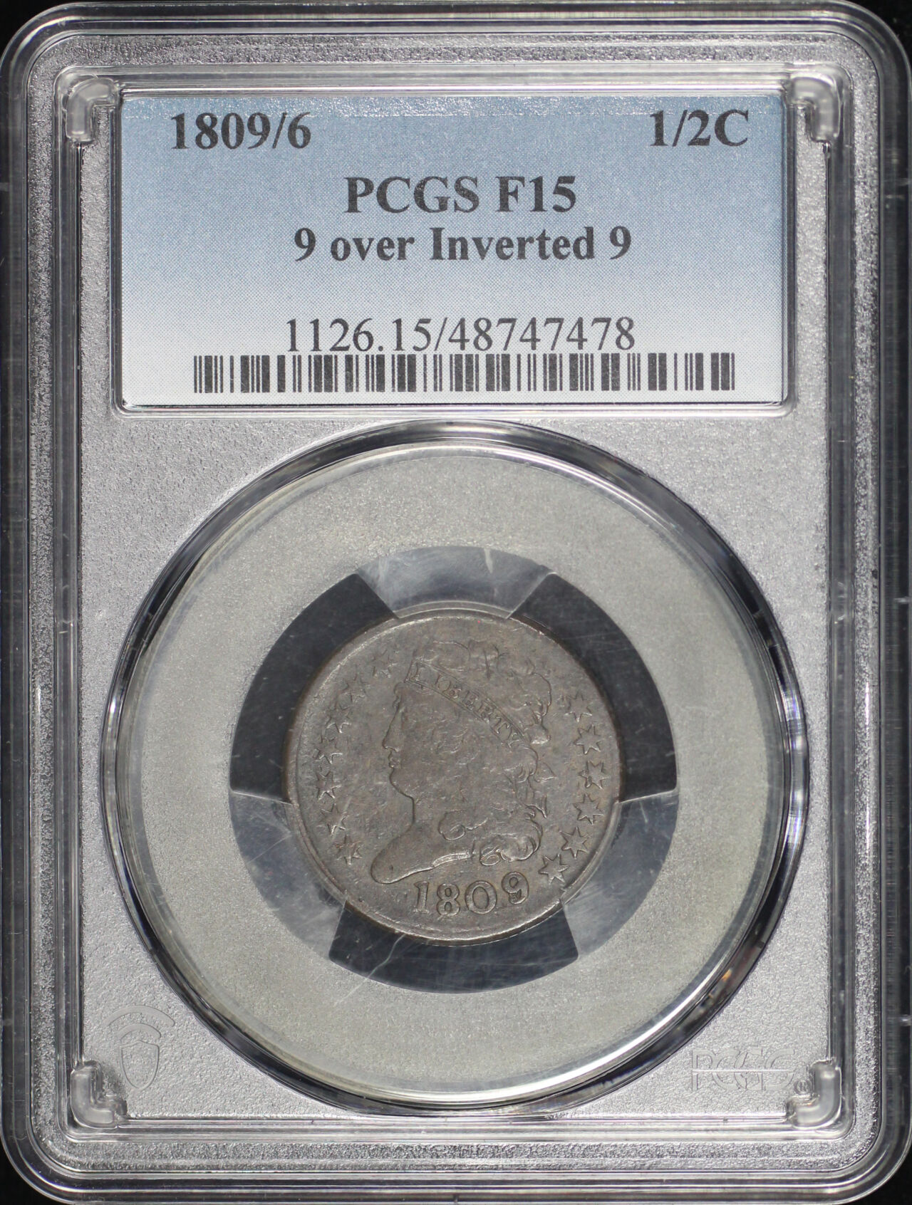 1809/6 Classic Head Half Cent 9 over Inverted 9 PCGS F-15 BN designed by John Reich.