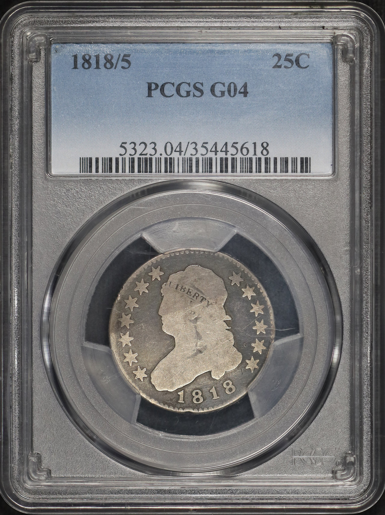 1818/5 Capped Bust Quarter PCGS G-04 designed by John Reich.