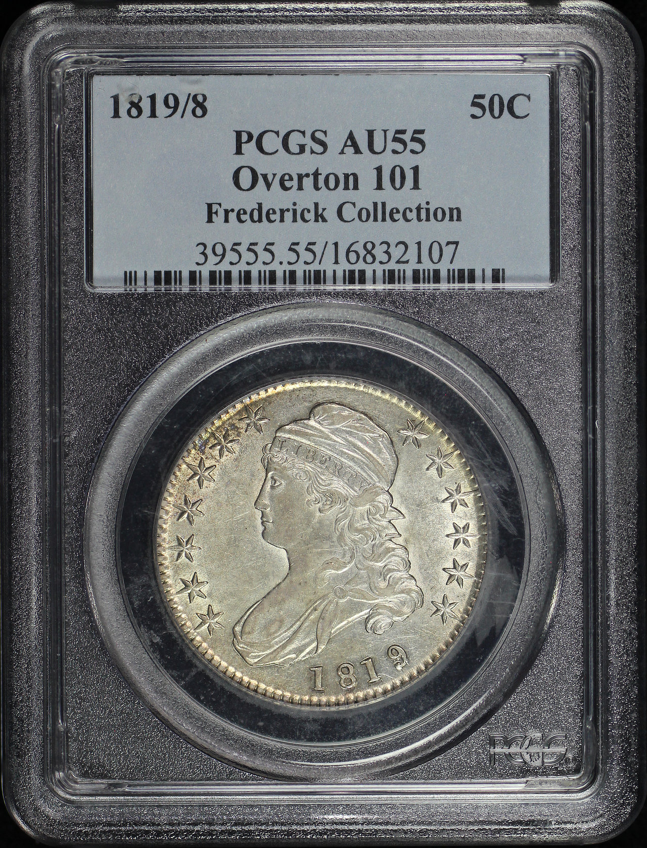 1819/8 Capped Bust Half Dollar PCGS AU-55 O-101 Frederick Collection designed by John Reich.