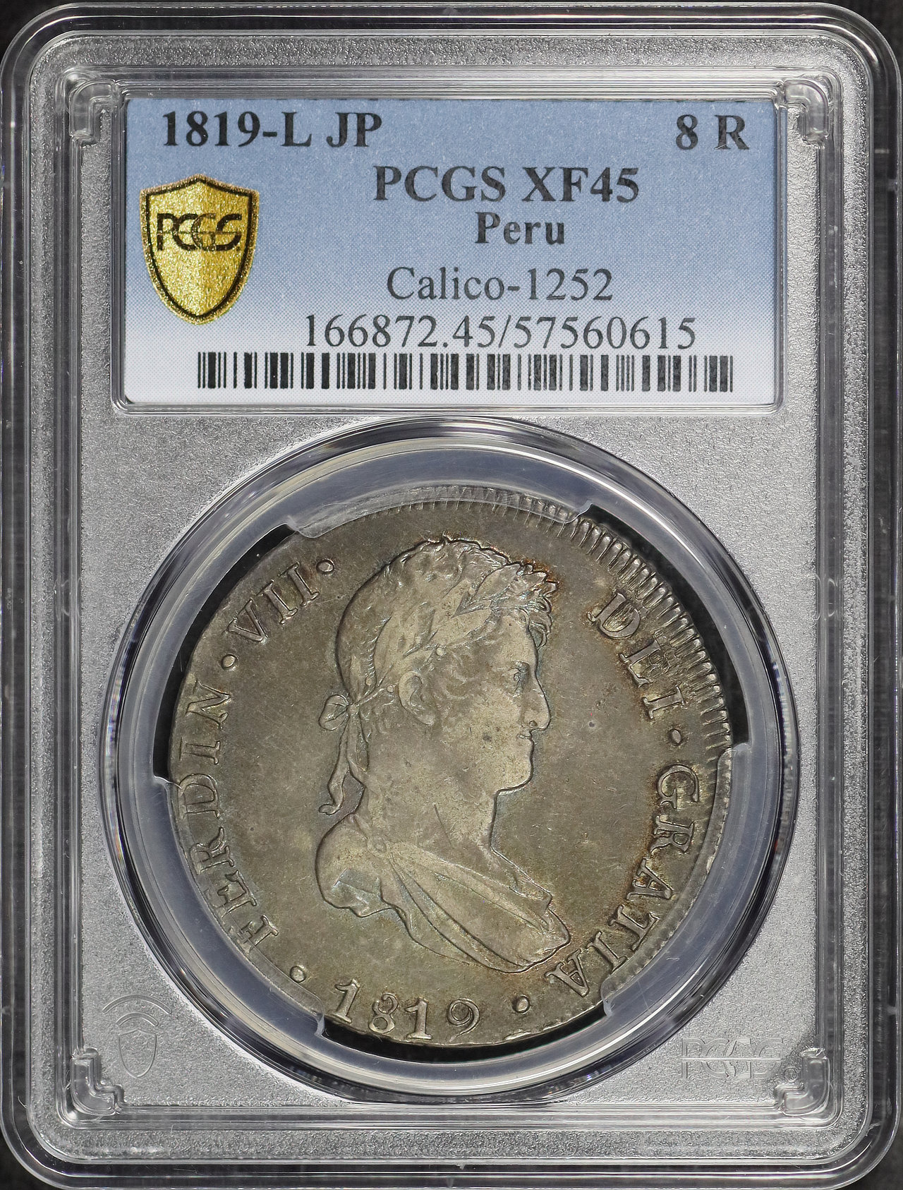 1819 Peru Calico-1252 8R PCGS XF-45.