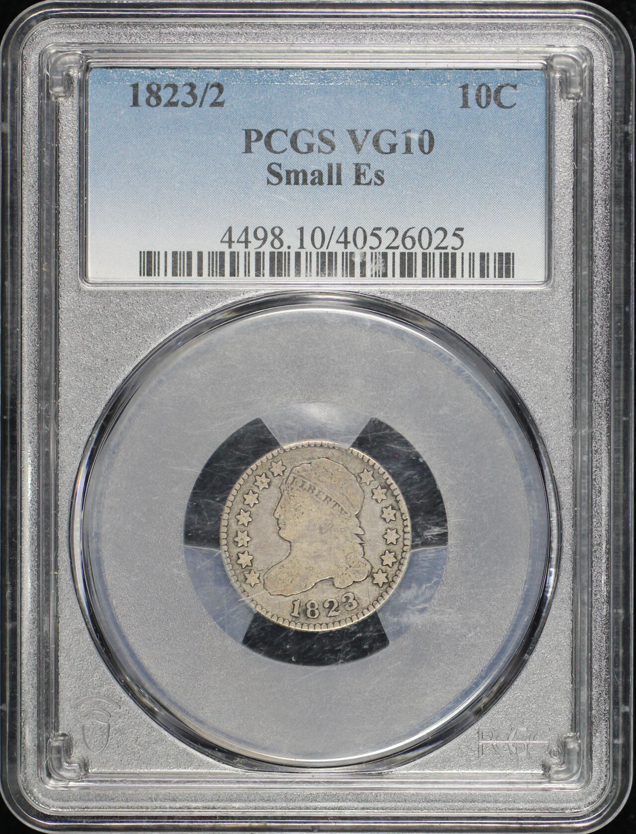 1823/2 Capped Bust Dime Small Es PCGS VG-10 designed by John Reich.
