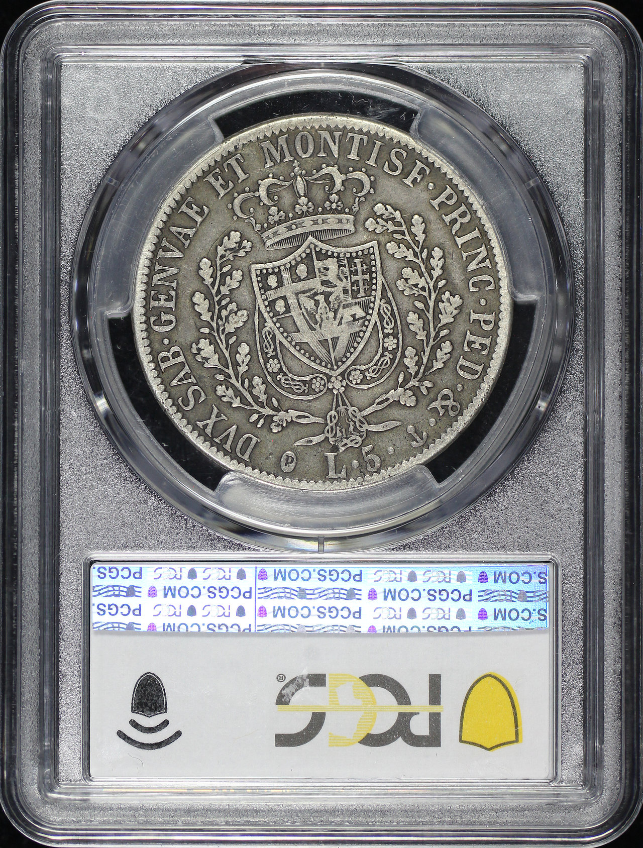 1827-P Italy-Sardinia Anchor 5L PCGS VF-30.