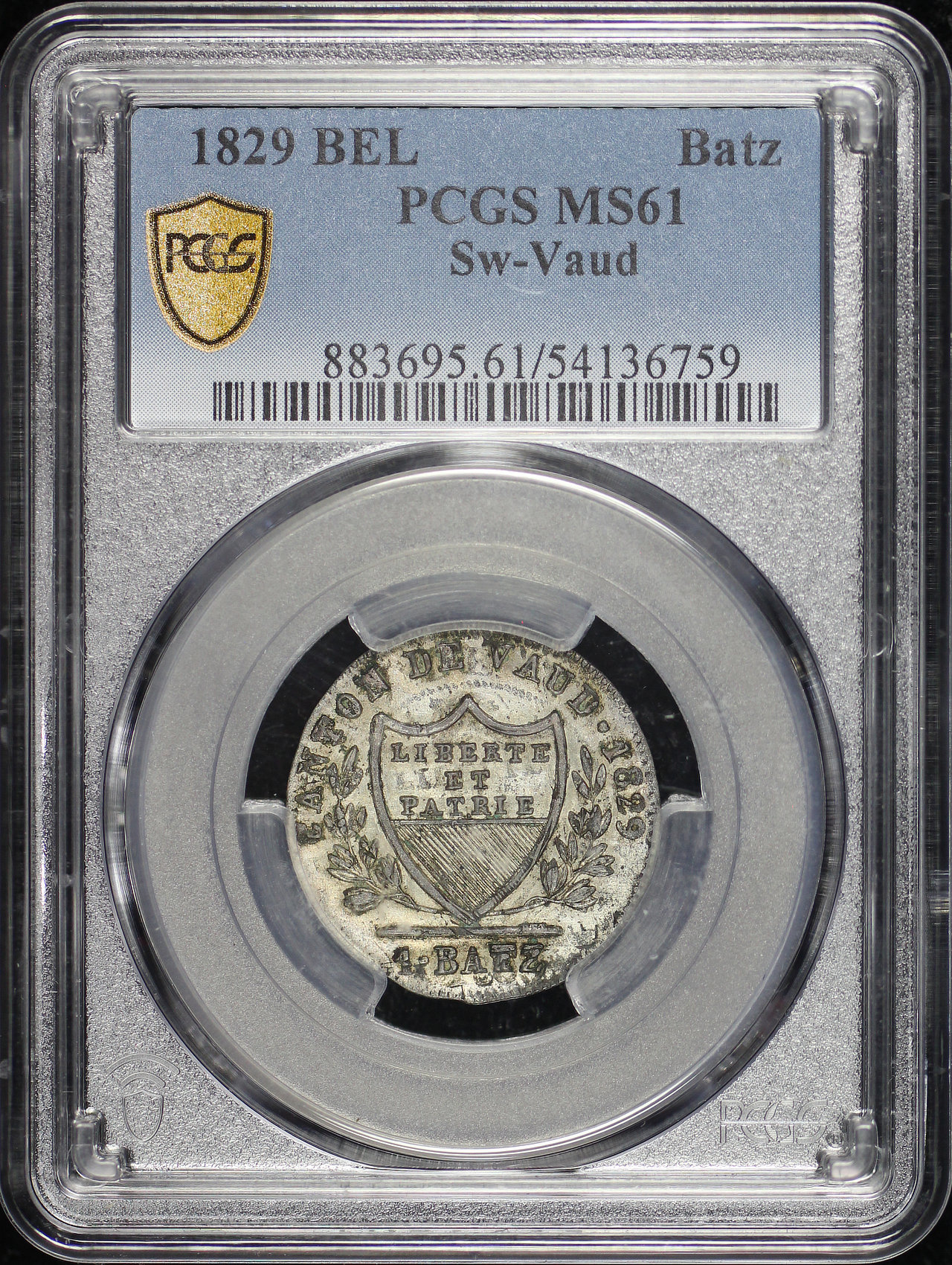 1829 BEL Switzerland Canton of Vaud Billon 1 Batzen KM-20 PCGS MS-61.
