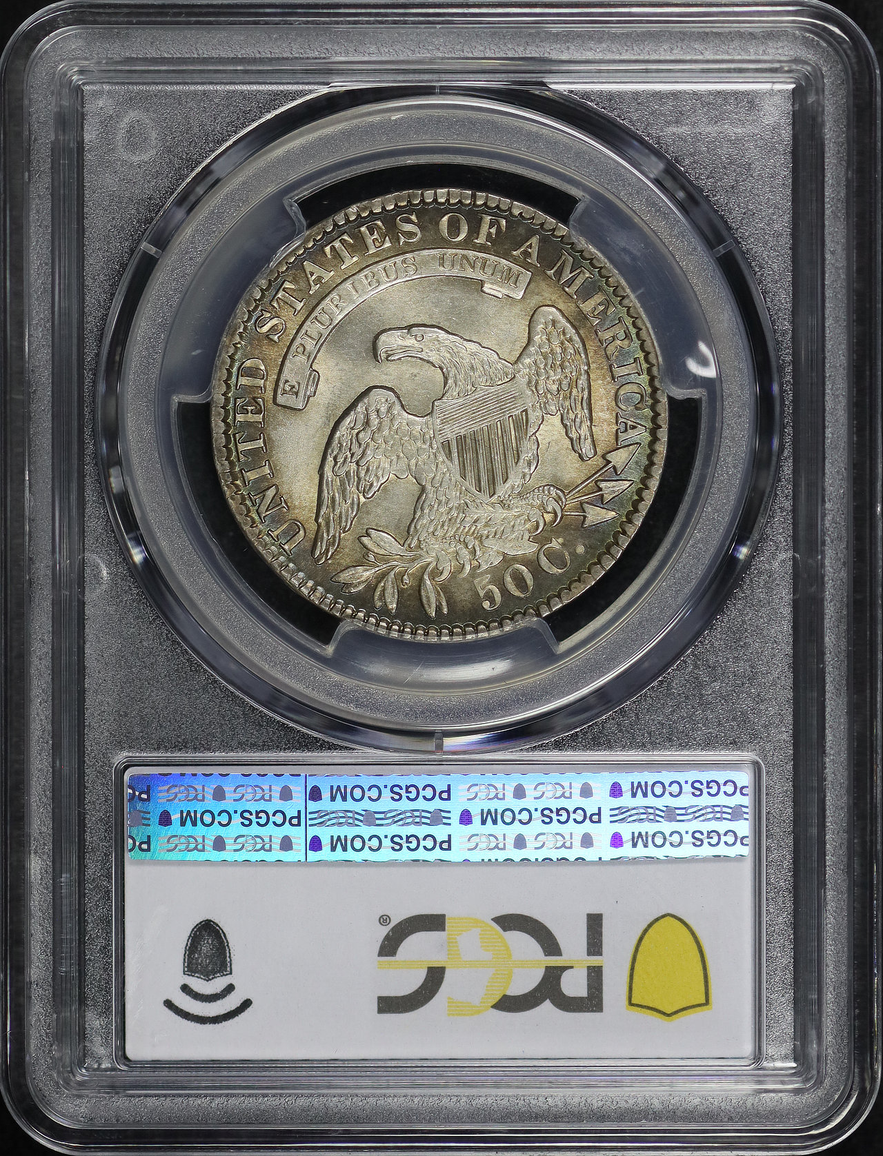 1834 Capped Bust Half Dollar Large Date, Letters PCGS AU-58 CAC designed by John Reich.