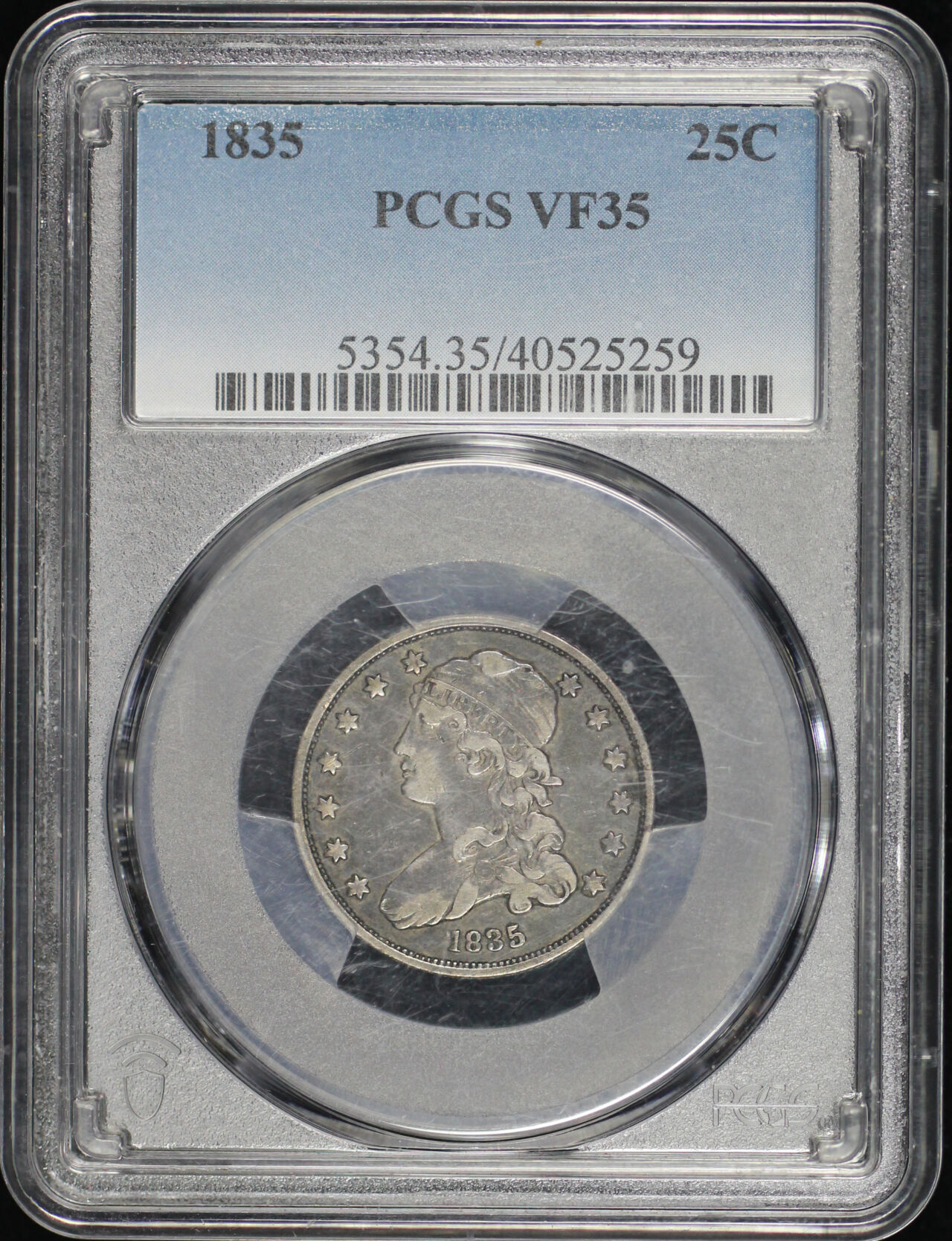 1835 Capped Bust Quarter PCGS VF-35 designed by John Reich.