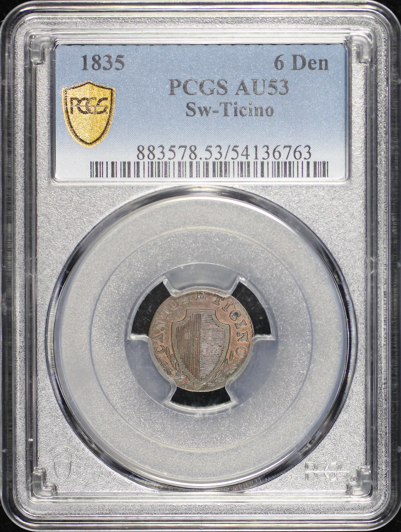 1835 Switzerland Canton of Ticino Copper 6 Denari KM-1 PCGS AU-53