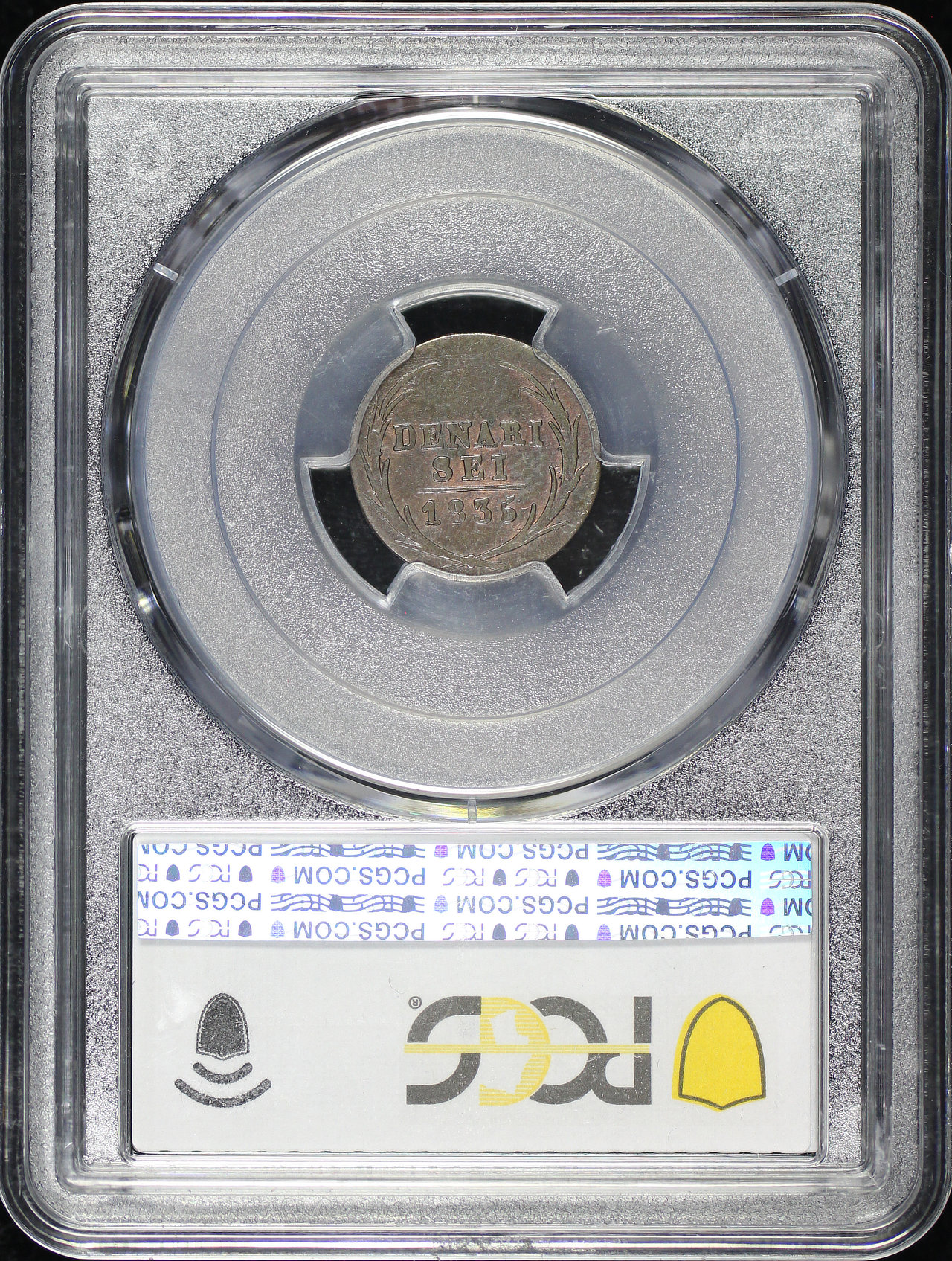 1835 Switzerland Canton of Ticino Copper 6 Denari KM-1 PCGS AU-53.