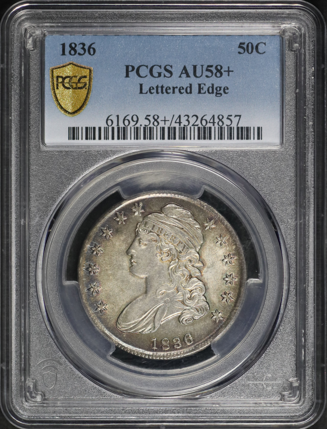 1836 Capped Bust Half Dollar Lettered Edge PCGS AU-58+ designed by John Reich.