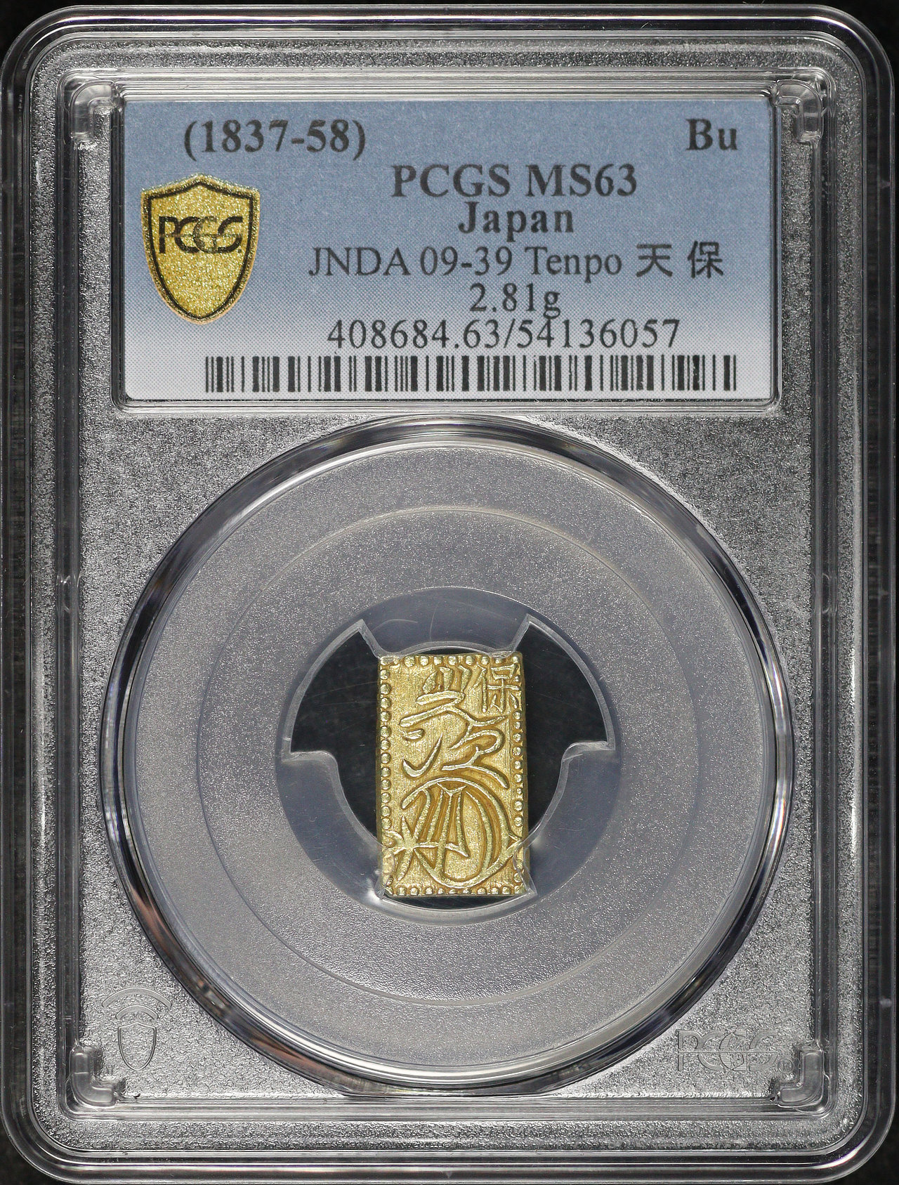 (1837-58) Japan Gold Bu JNDA 09-39 Tenpo 天 保 2.81g PCGS MS-63. 0.0201 oz AGW.