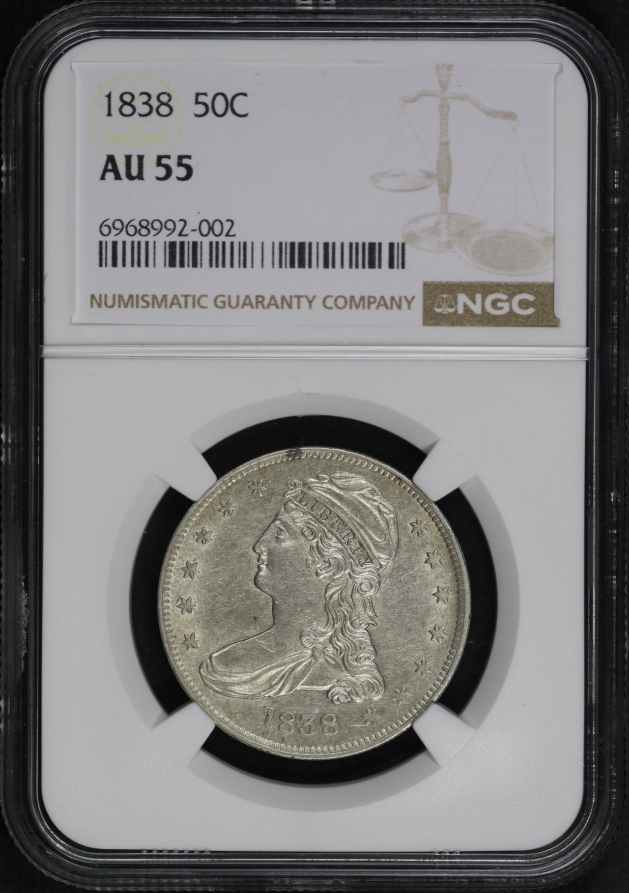 1838 Capped Bust Half Dollar NGC AU-55