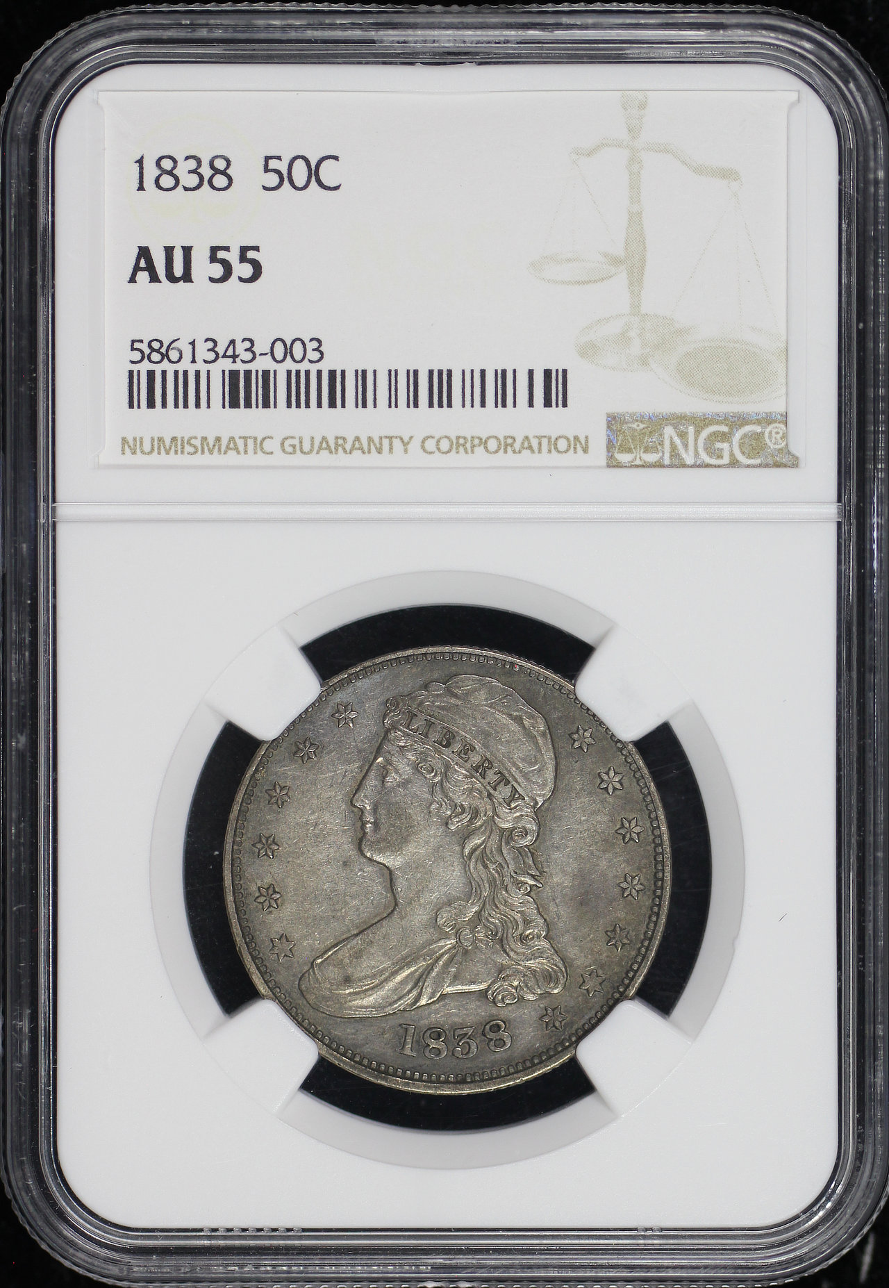 1838 Capped Bust Half Dollar NGC AU-55