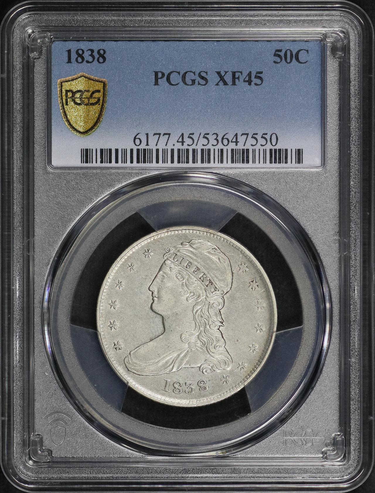 1838 Capped Bust Half Dollar PCGS XF-45 designed by Christian Gobrecht.