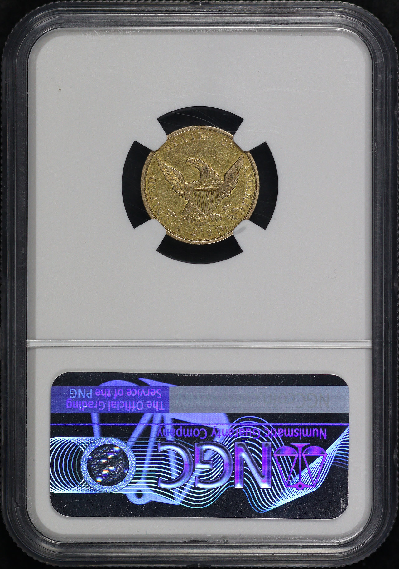 1839-C Classic Head $2.5 NGC XF-45. There is a minor chip on the top left rim of the NGC holder, visible on the front side.