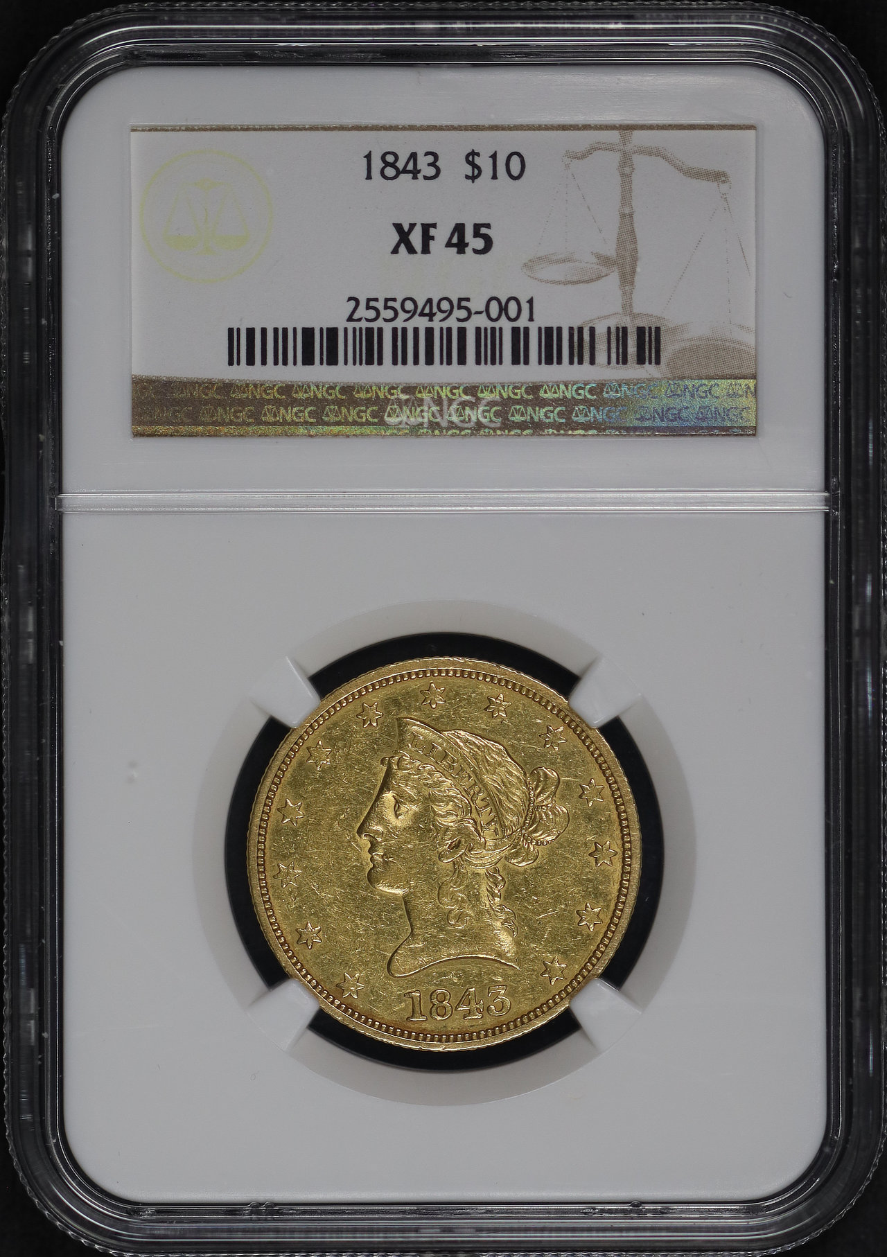 1843 Liberty Head $10 NGC XF-45.