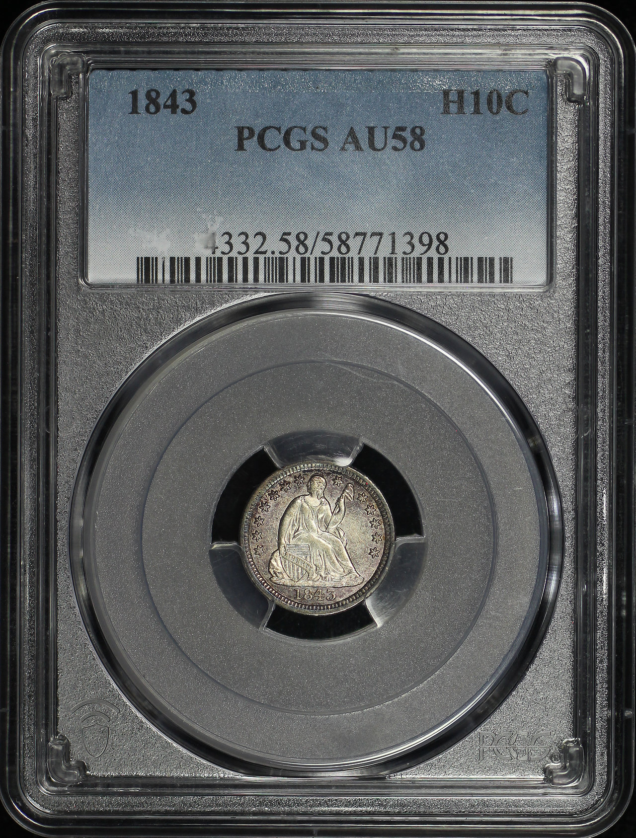 1843 Liberty Seated Half Dime PCGS AU-58