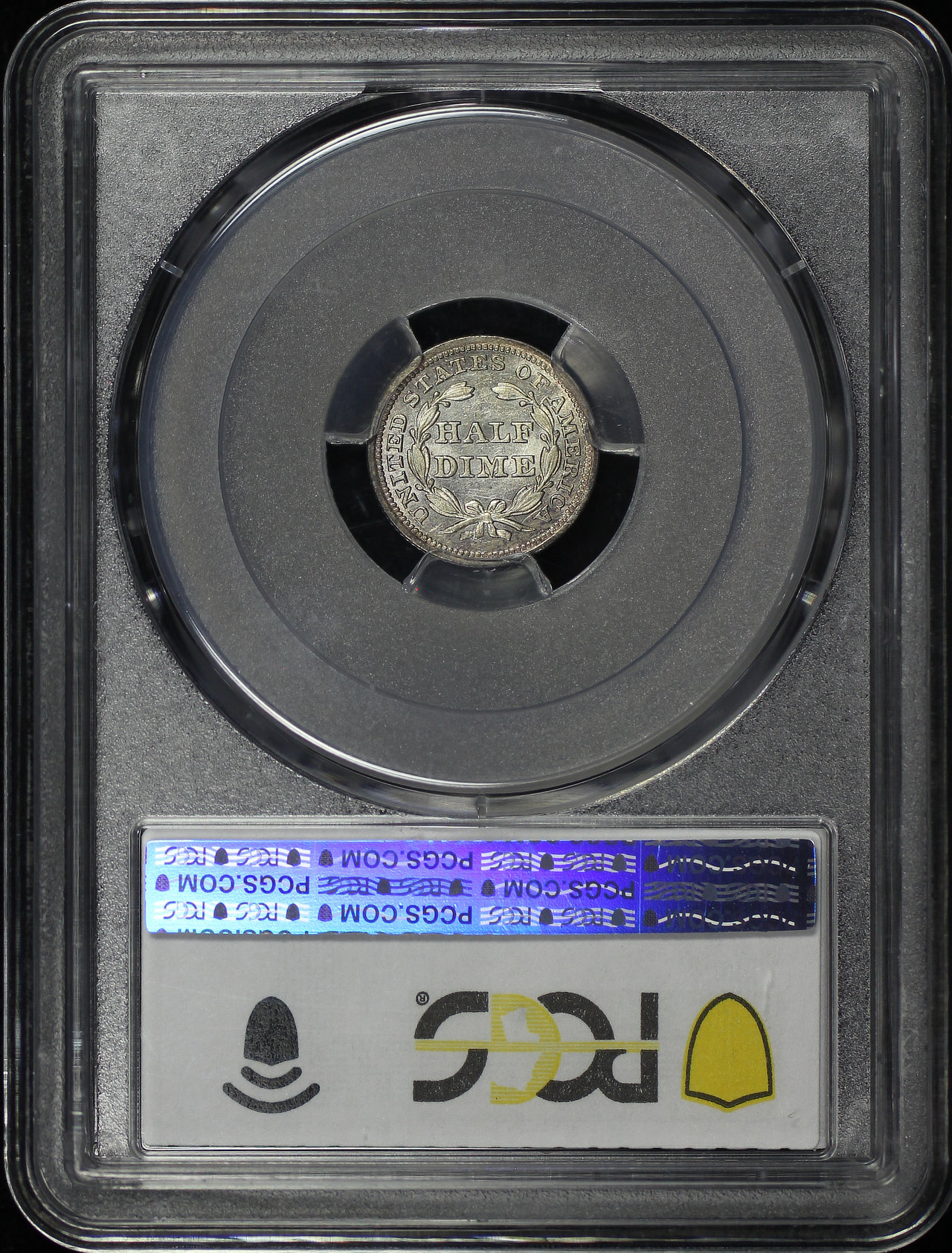 1843 Liberty Seated Half Dime PCGS AU-58 designed by Robert Ball Hughes and Christian Gobrecht.