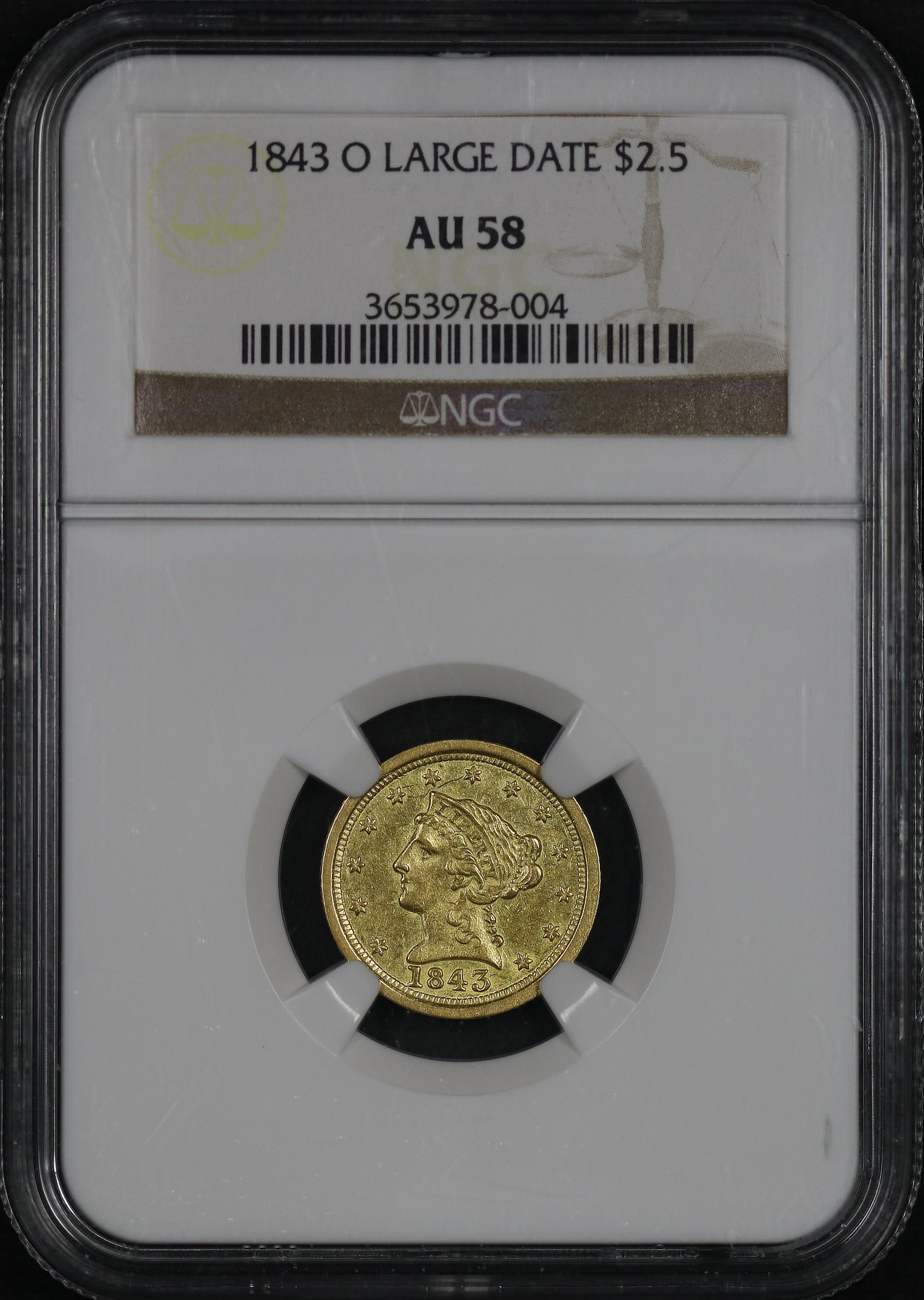 1843-O Large Date Liberty Head $2.5 NGC AU-58.