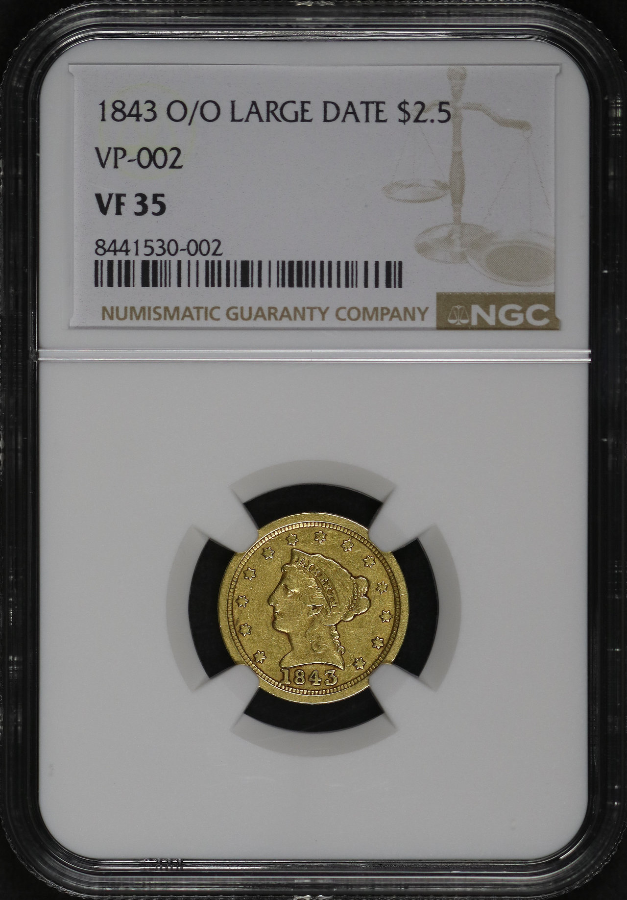 1843-O/O Large Date VP-002 Liberty Head $2.5 NGC VF-35.
